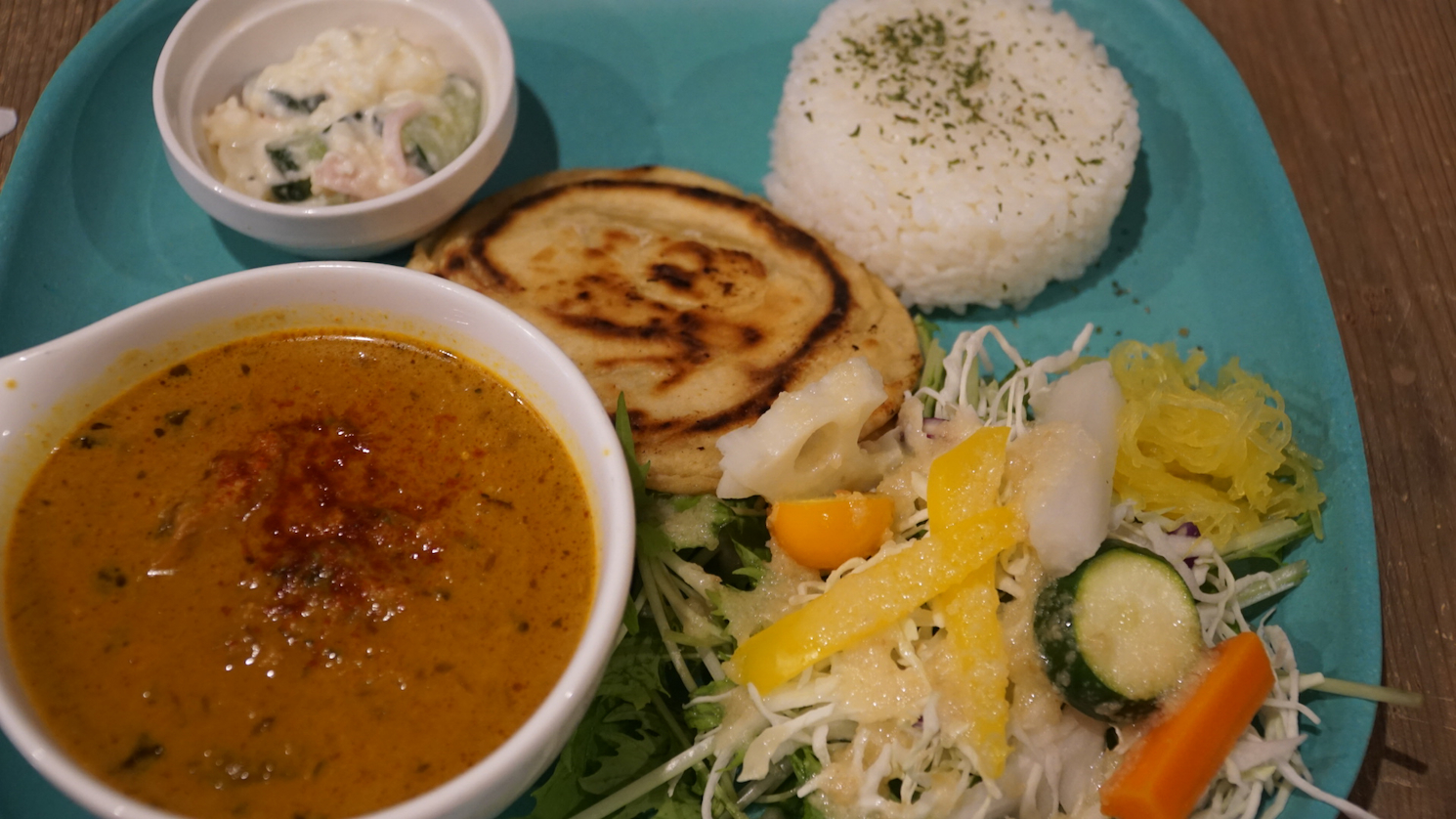 本場よりライトな食感のパラタでいただくスパイスカレー