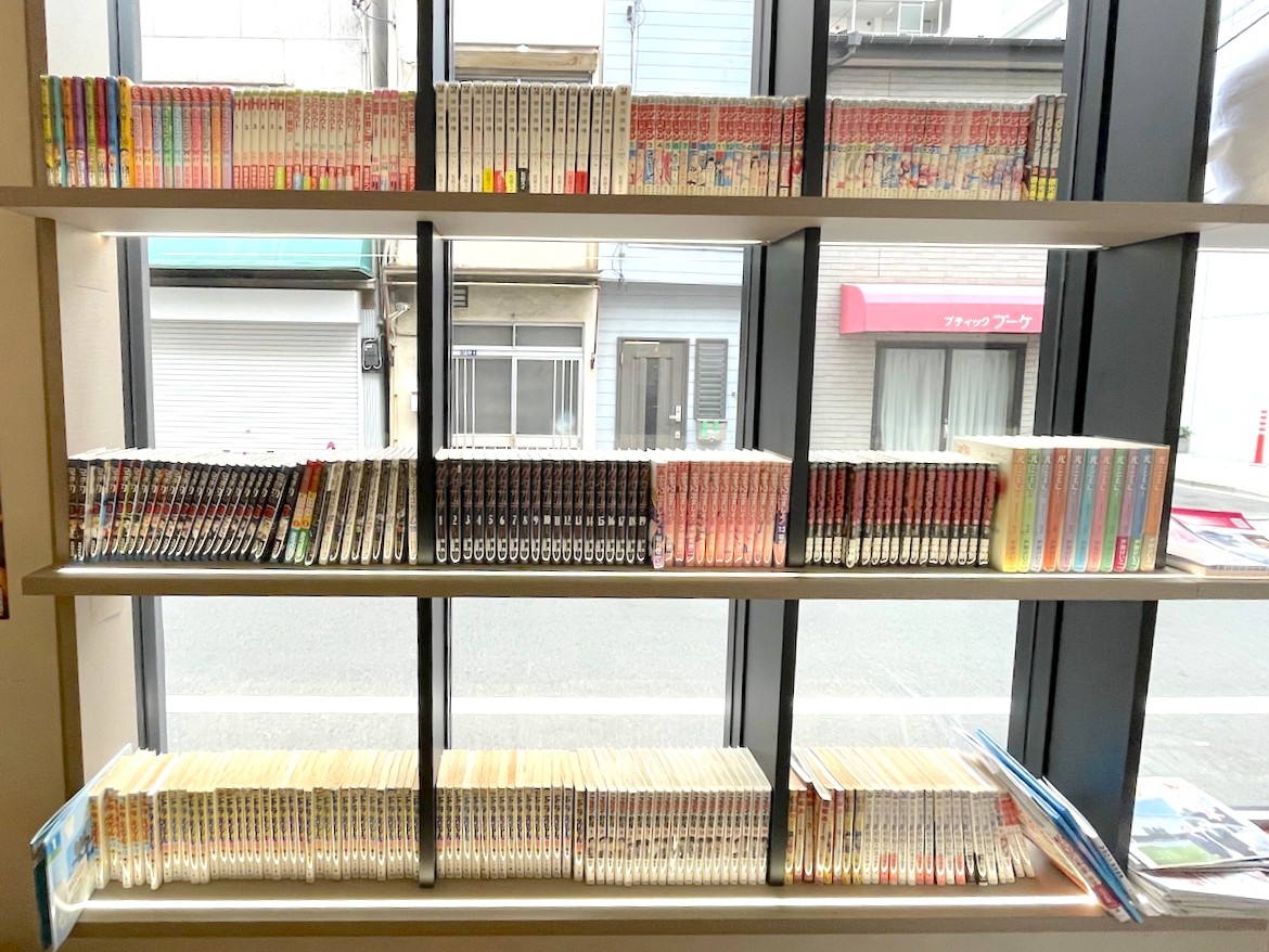 ドリンク販売などのほか、漫画がずらりと並んでいて湯上がりの時間をゆったりと過ごせそうだ。
