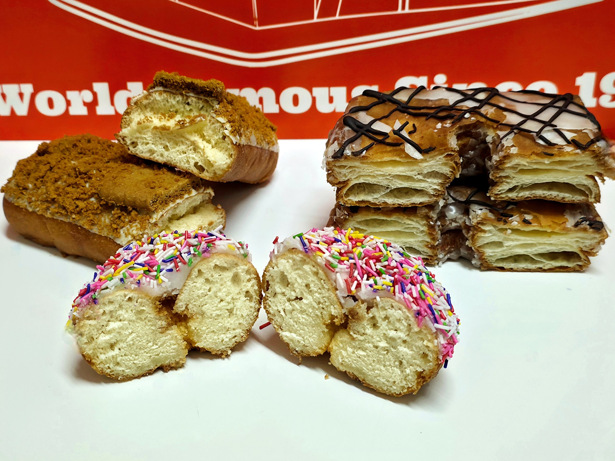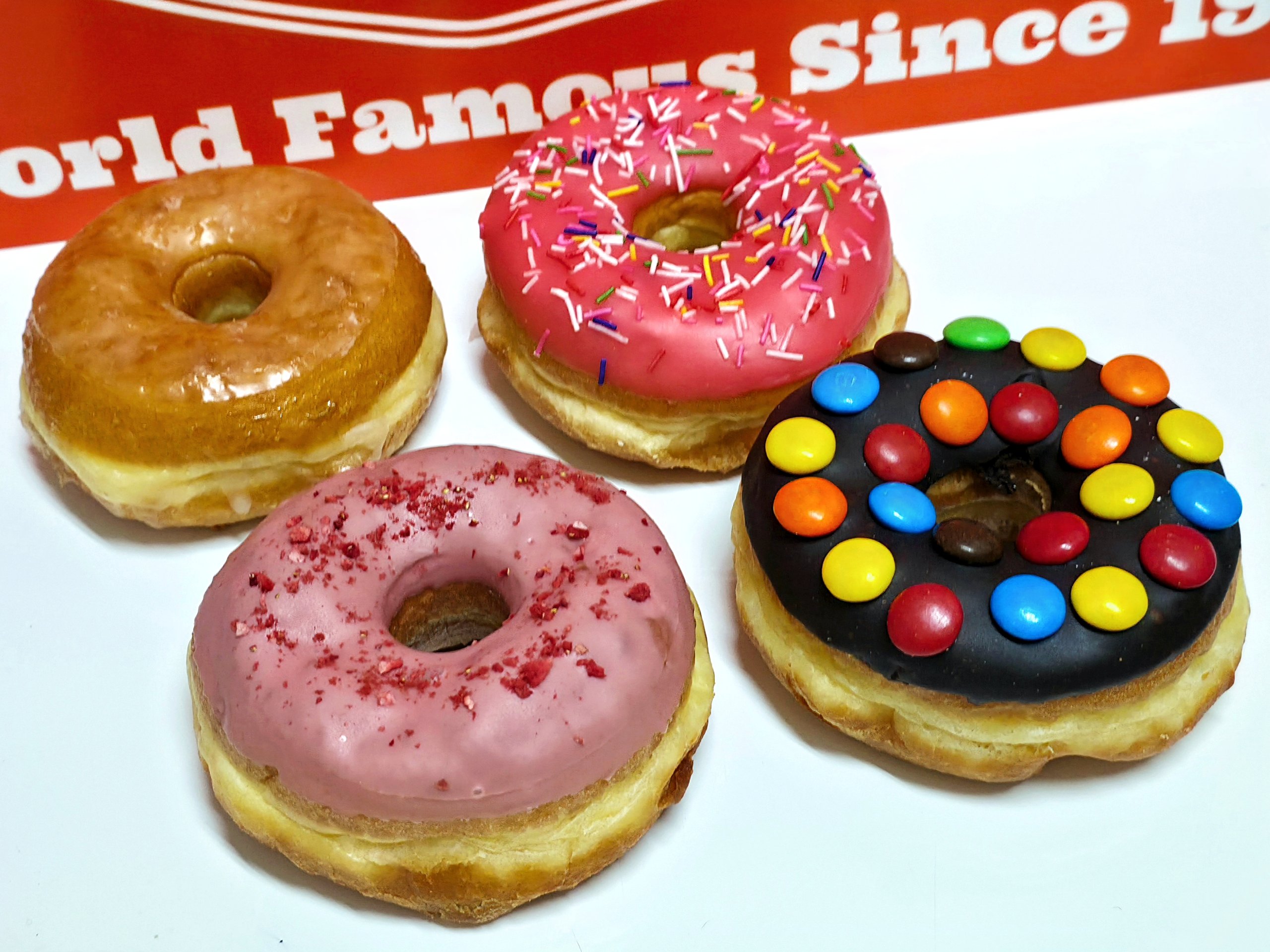 渋谷代官山店の巨大な4mのドーナツ形の看板は、撮影スポットにもなっていてSNSでもよく見ますが、アメリカ1号店には10mのドーナツ看板があるそうです。さすがアメリカはワイルドにゃー♪