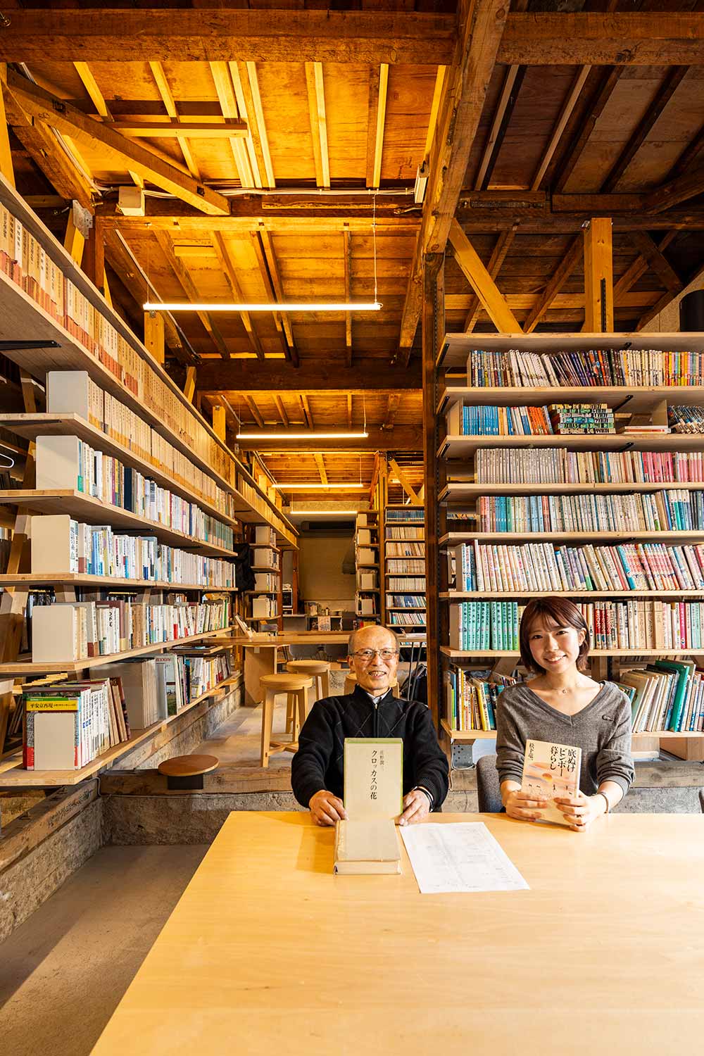 高校の国語教師だった齊藤貞博さんは「退職したら読もう」と購入した本が増えに増え、建築士の息子さんの「公開したら?」の声に公開を決意。築50年の実家を改装した本の森では、小説、随筆、写真集、地名辞典などの蔵書が自由に閲覧可能だ。また、日曜恒例でご近所暮らしの姉妹による間借りカフェ『megumi』が開き、土曜の映画会も月2回開催。