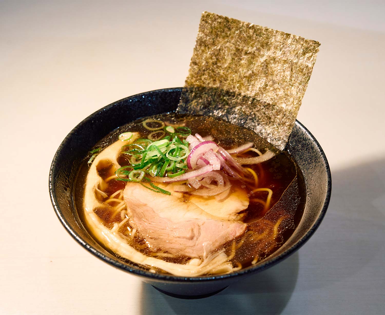 2026年1月14日にはプレミアム醤油らーめんの販売を開始。清湯(ちんたん)と鶏油強めのスープにコシのある細麺。具はレアチャーシューに穂先メンマと豪華仕様。口中に運べば、澄み渡る上品な風味がぶわっと広がり、頬がゆるむ。