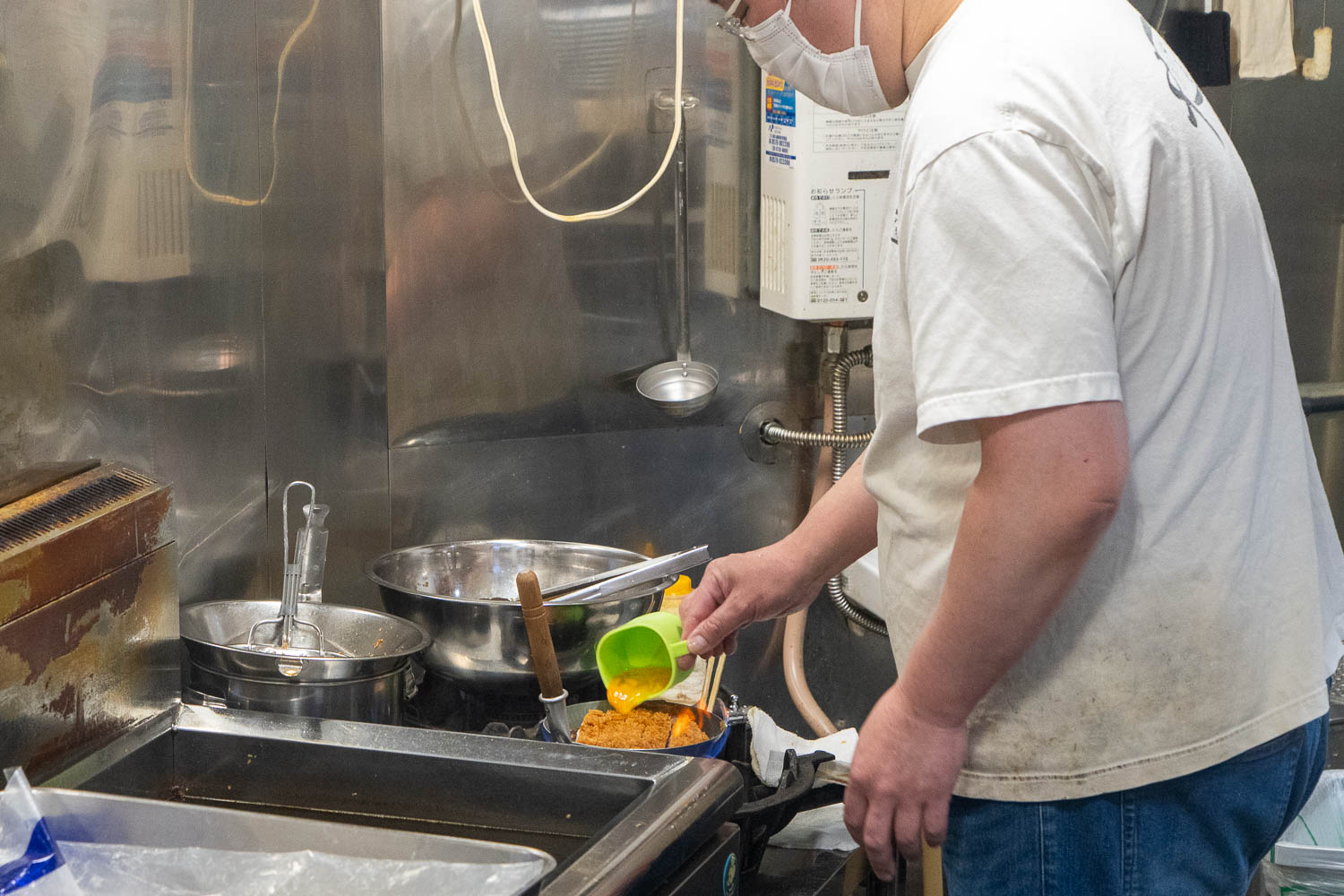 「一度も全部の油を交換したことはないですね。1日の終わりにフライヤーから油を抜いて、掃除して、沈んだ汚れを取り除いて、足りない分を足すというやり方。この油は、コシが長持ちするんですよ」と寺田さん。その言葉には油と作業への自信が感じられた。