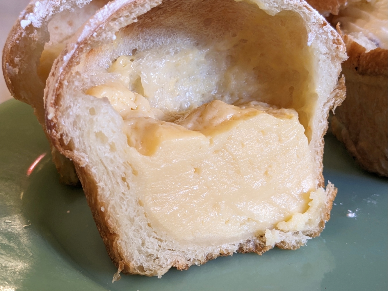 クリームパンの中に入っているのは、もっちりしたカスタードクリーム。一般的なカスタードクリームとプリンの中間ぐらいの固さがあり、インパクトが強い。コクのある奥久慈卵が使われ、味に深みがあるのも特徴。口溶けのいいパンと合わさり印象を残しつつ、パンそのものに潜む小麦の風味もぐっと引き出す。