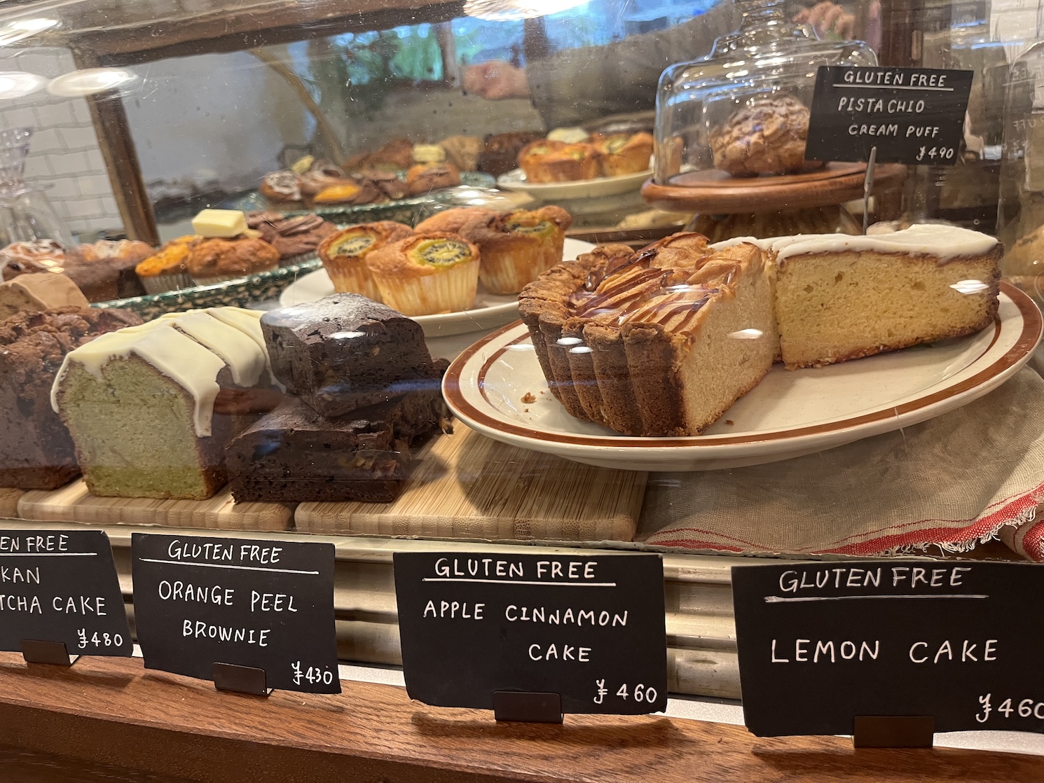 ショーケースには、旬の果物を使ったグルテンフリーの焼き菓子が常時20種前後ある