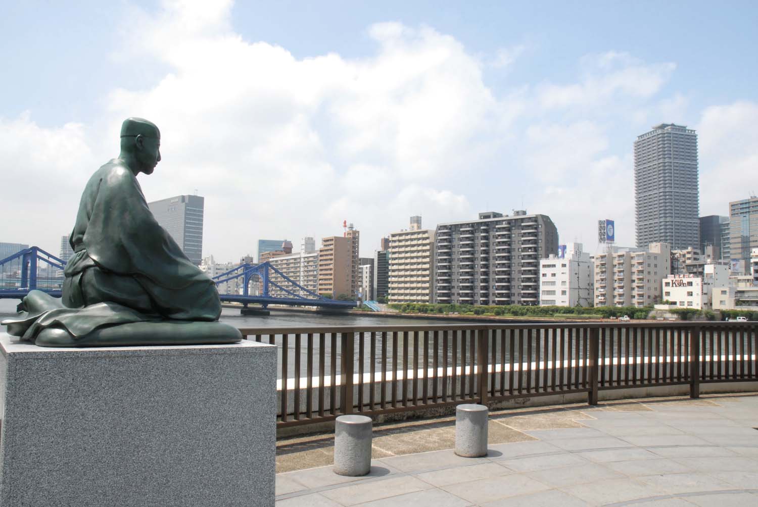 芭蕉翁像が隅田川を眺める『芭蕉庵史跡展望庭園』