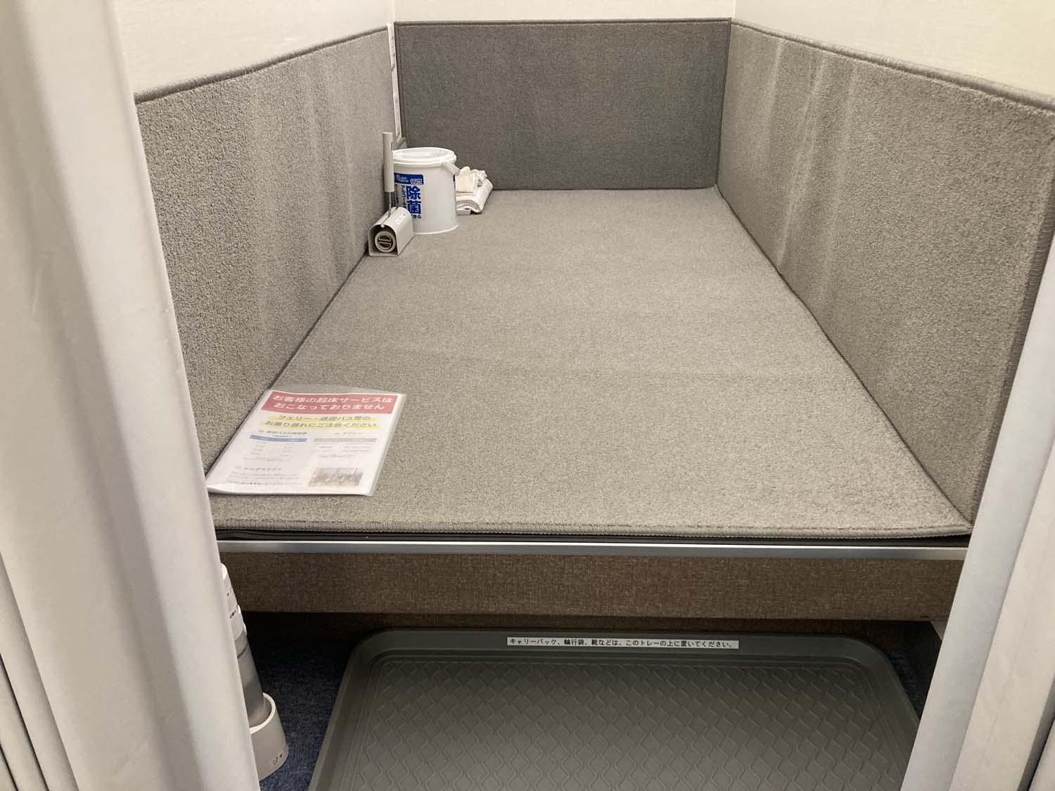 ブースは入り口から男女別になっていて、仕切りの壁と遮光性の高いカーテンによってプライベート空間が確保できるようになっている。ブースは大人が足を伸ばして横になれる広さで、カーペットがふかふかしているため、仮眠を取るのにもよさそうだ。