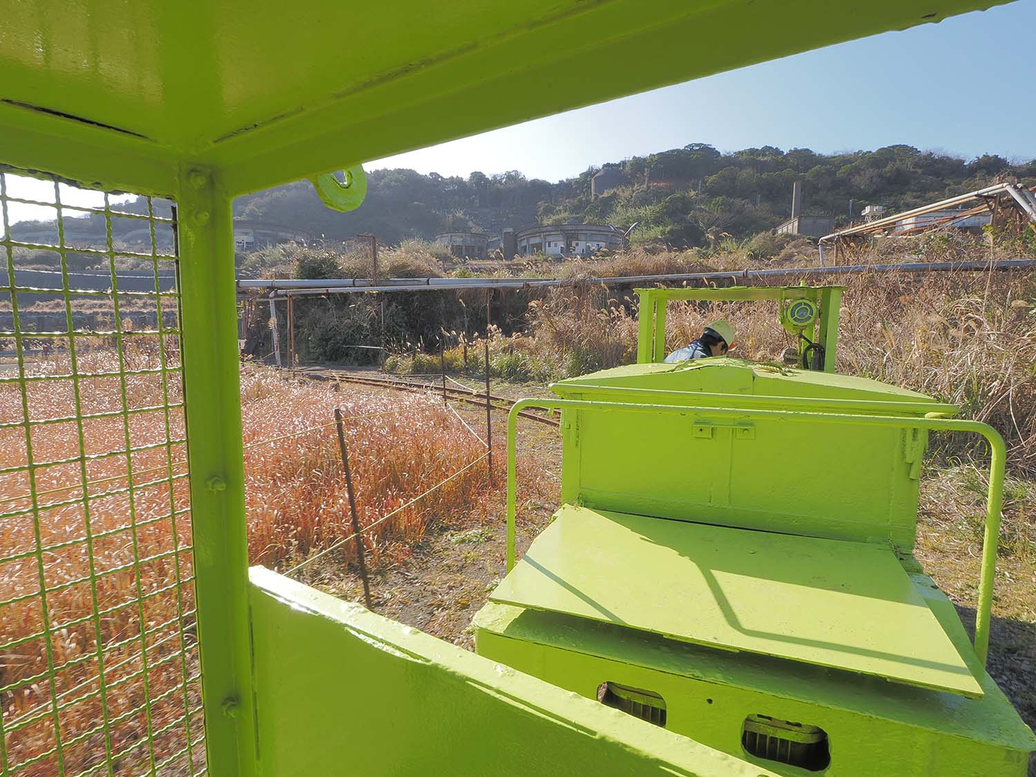 軌道は前回紹介したもので、一見すると廃線跡のような線路を走行します。レールの繋ぎ目と路盤の振動が直に伝わり、旅客車両では味わうことのできない小刻みな揺れに驚きました。