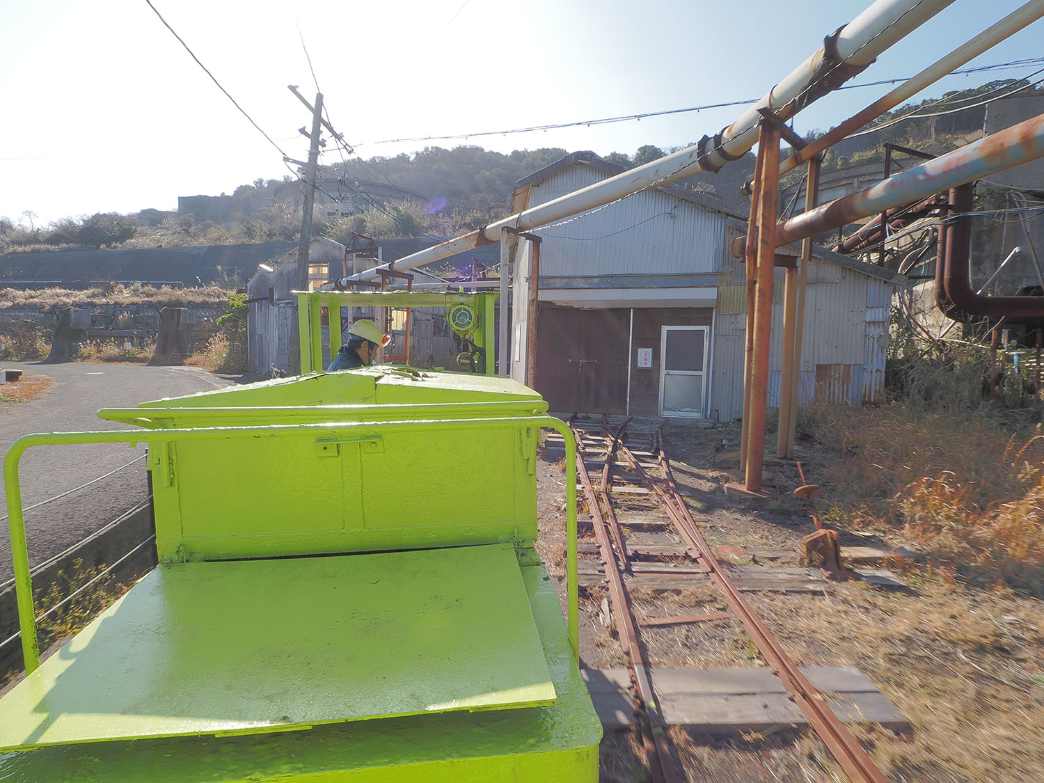 坑道は閉山後にコンクリートで坑口を堅く塞いで密閉するため、全国各地にあった坑口はどこも密閉されているはずです。池島炭鉱も海底へと続いていた坑道のほとんどは密閉されましたが、閉山後も鉱山技術を学ぶ技術支援施設となり、現在はツアーとして一部の坑道が活用されているのです。人車に揺られ、坑道へと吸い込まれながら、こうして入坑体験ができる。なんとも言えない高揚感に包まれます。いま走っている軌道は廃線跡であり、島内唯一現役の鉄道でもあります。廃線ファンの目から見ても興奮します。
