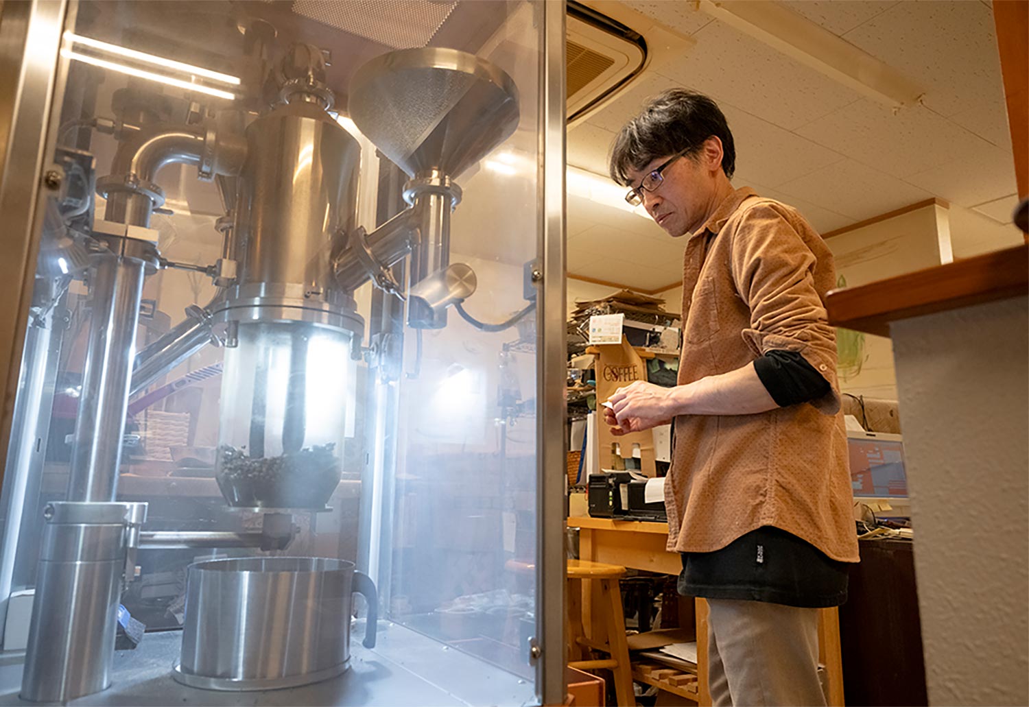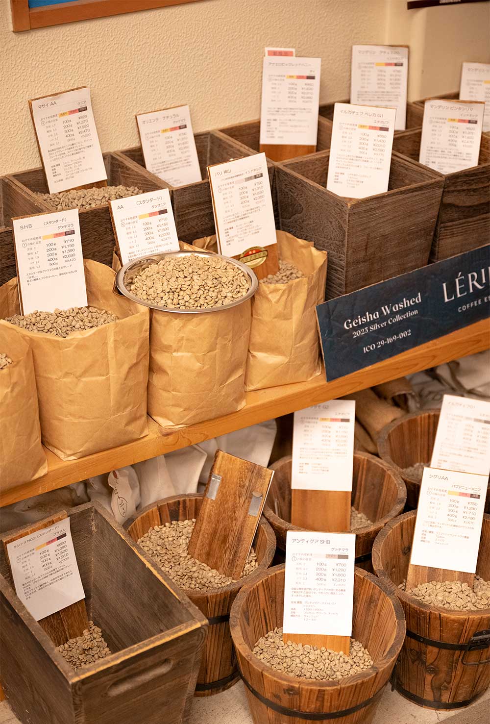 5年の移動販売を経て2009年に開店した井上恭一さんの店は、オーダーを受けるごとに少量対応の焙煎機で焼きたてのコーヒーを提供。気づけば50種類にも増えた豆を20段階の焙煎度合いで焼き分ける。「この組み合わせで1000通りはできる計算。どんなお好みにも合わせられるはずです」。ボトルキープのように飲めるオーダーメードコーヒーにも挑戦してみたい。