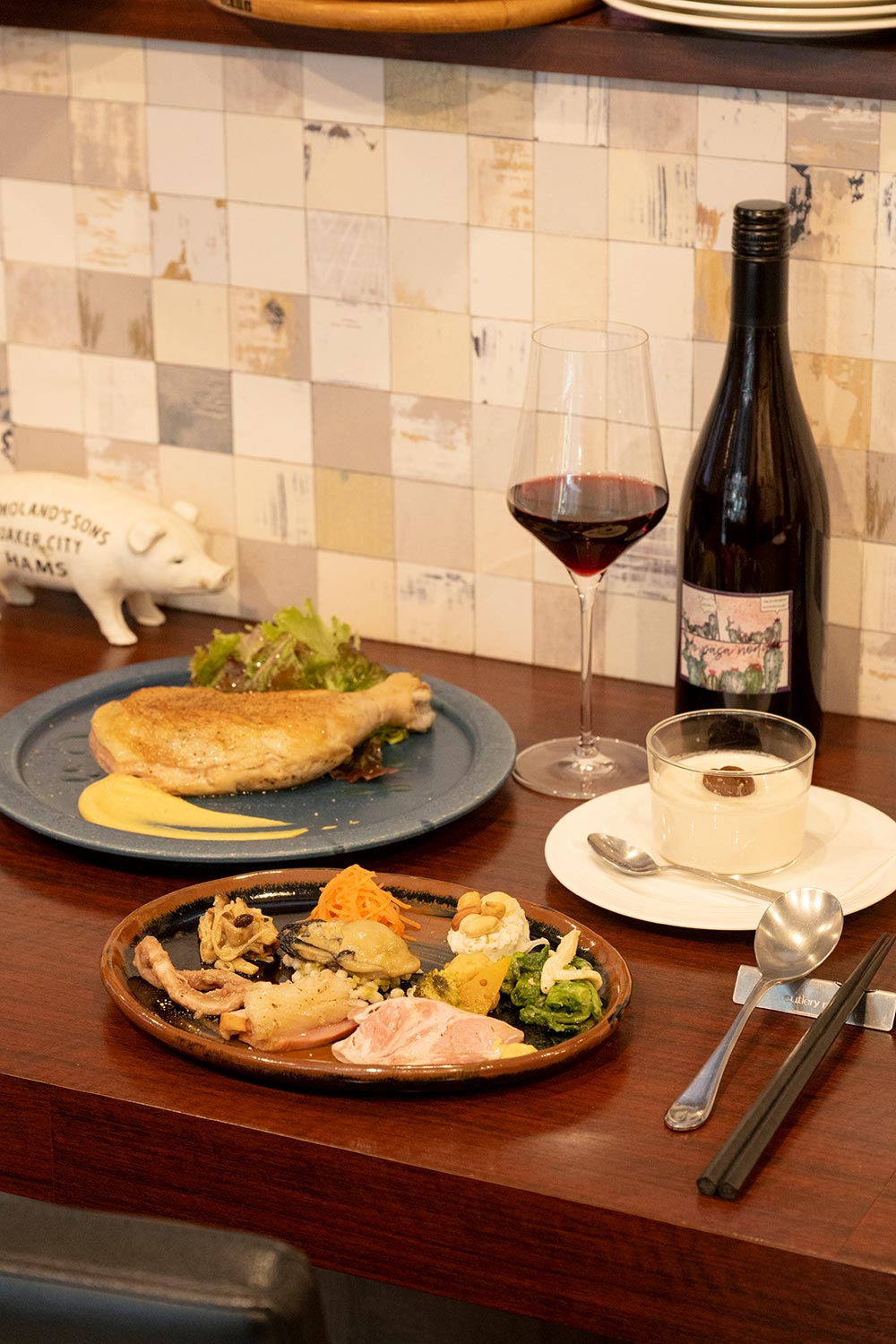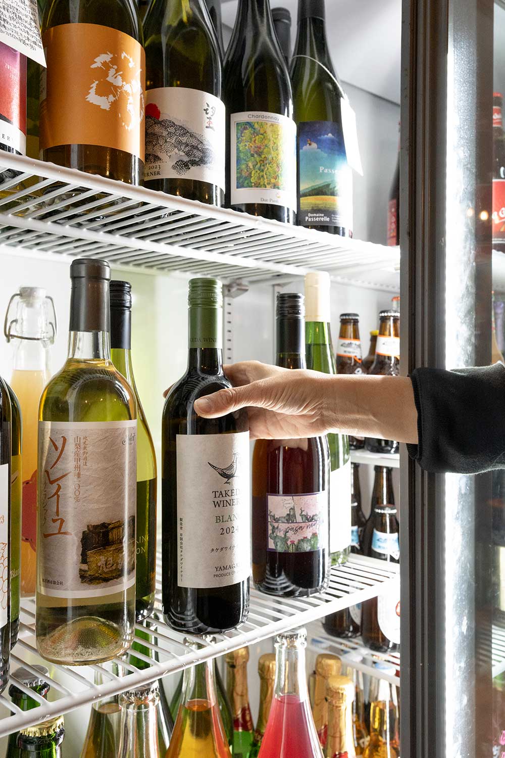 杉戸町出身の長野明さんが手掛けるのは、地元の野菜や全国の生産者から直接仕入れる肉を使ったフレンチベースの創作料理。ドリンクは冷蔵ケースから自由に取り出せるセルフスタイルで、ワインは国産オンリー。「日本ワインの奥深さに感動して、地元の『志村酒店』さんから仕入れています」。元菓子職人だけありデザートまで大満足!