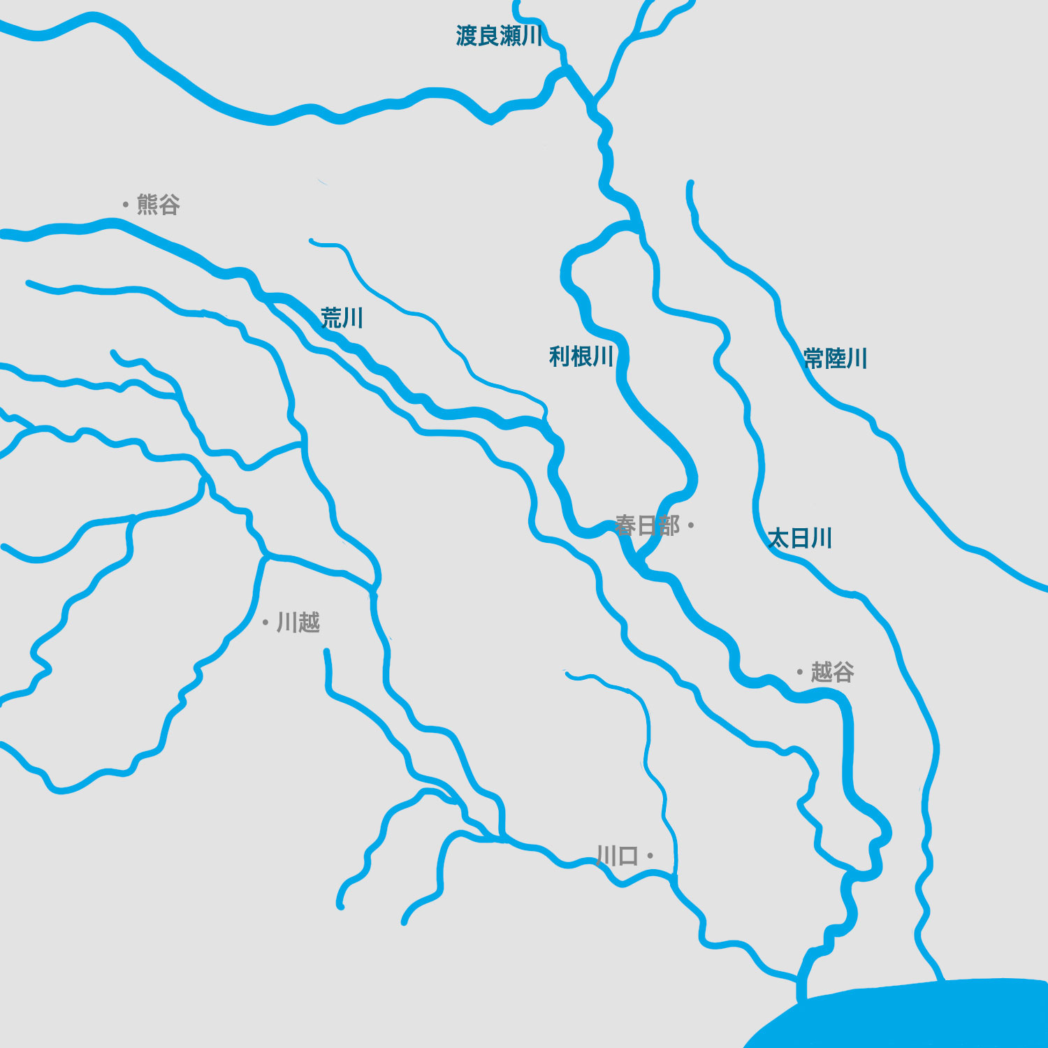徳川家康は江戸に入ってすぐ、この長男坊の厄介払いに取り掛かる。時期と目的は諸説あるようだが、治水こそが江戸の開発と繁栄の鍵だったのは間違いないだろう。文禄3年(1594)から約60年の月日をかけて、関宿から東へ流れ銚子で太平洋へと注いでいた常陸川に利根川を流した。これが利根川の東遷と呼ばれる瀬替えだ。