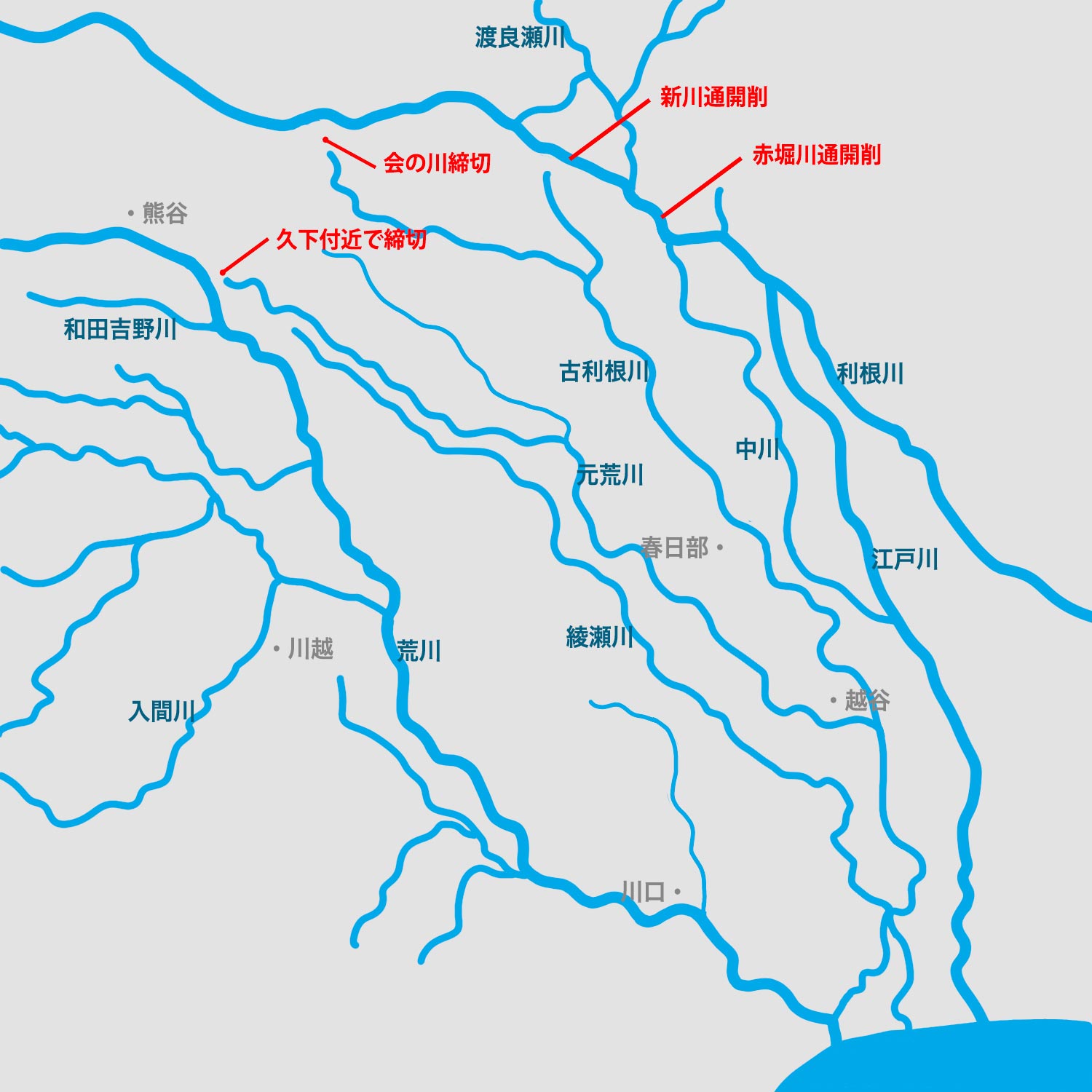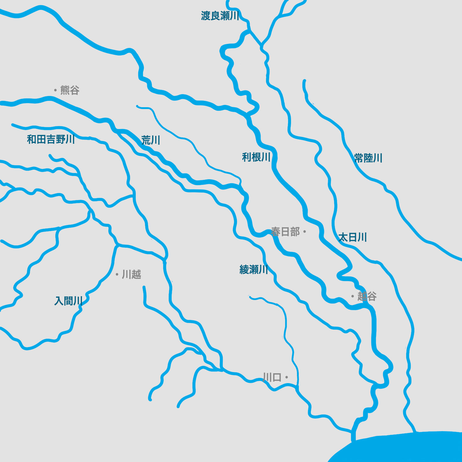 河川図は国土交通省関東地方整備局荒川上流河川事務所の図を元に作成。地名はすべて現在のもの。