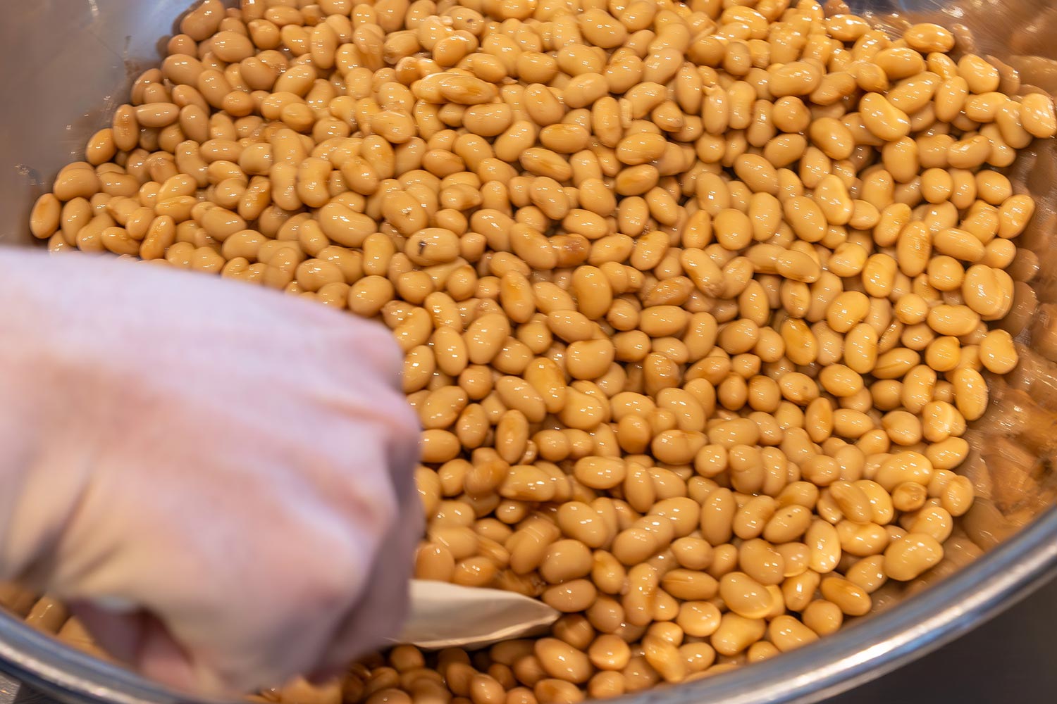 大豆のほっくり感と甘さが楽しめる大粒を採用。ラオス産ピュアアラビカコーヒーで煮ているので香ばしい。納豆特有の粘り気と匂いはなく、デザートやヨーグルト、サラダなどのトッピングにしても。