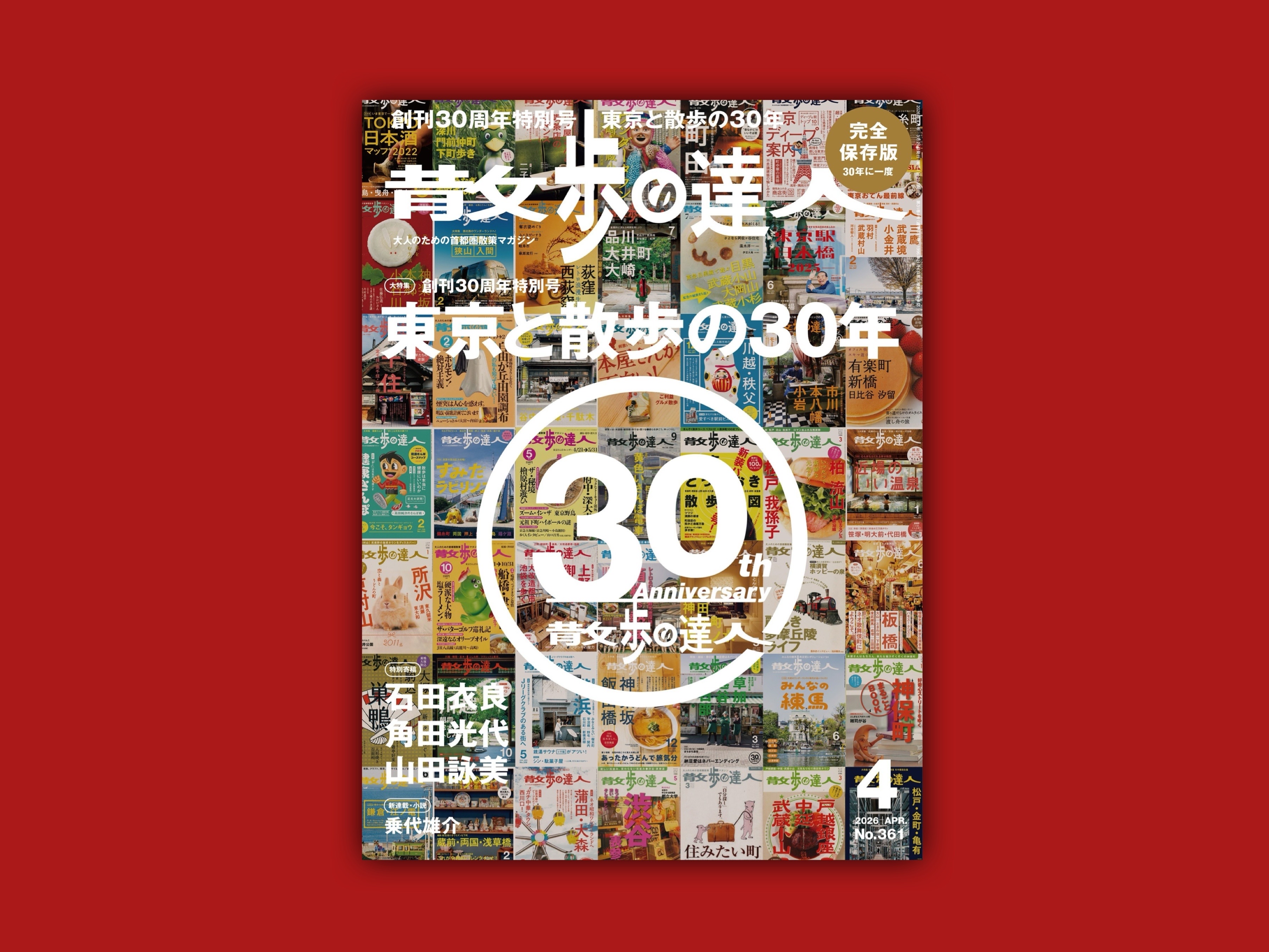 この2026年4月号で、『散歩の達人』は創刊30年。私たちは、街を歩き、その場所にしかないオリジナリティあふれる人、モノ、コト、風景を見つけることを大切にしてきました。なるべく目を開き、耳を澄まし、路地を抜けてきました。歩けども歩けども、発見が尽きることはありません。