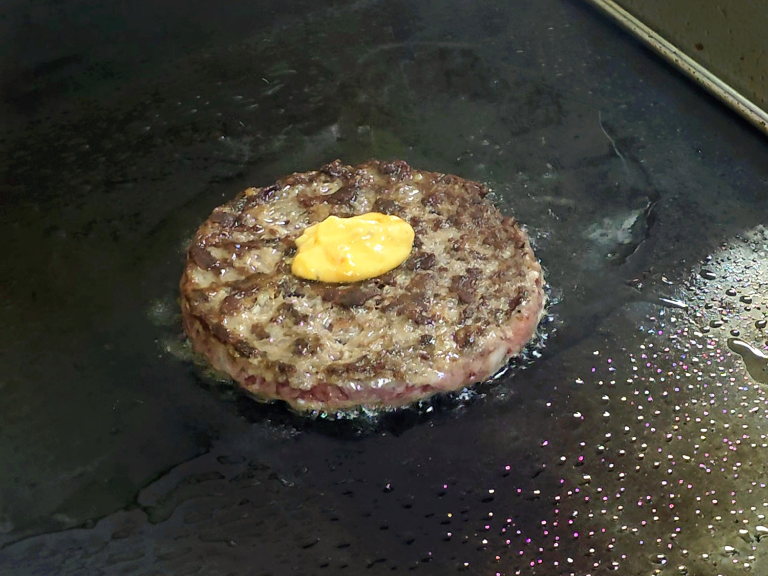 そして、パティを焼くときに出た肉汁の上で、再度焼き上げます。