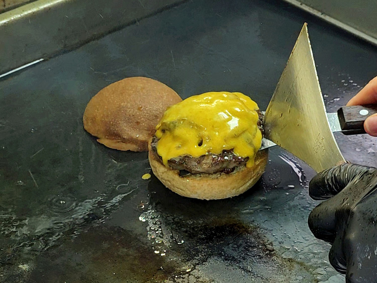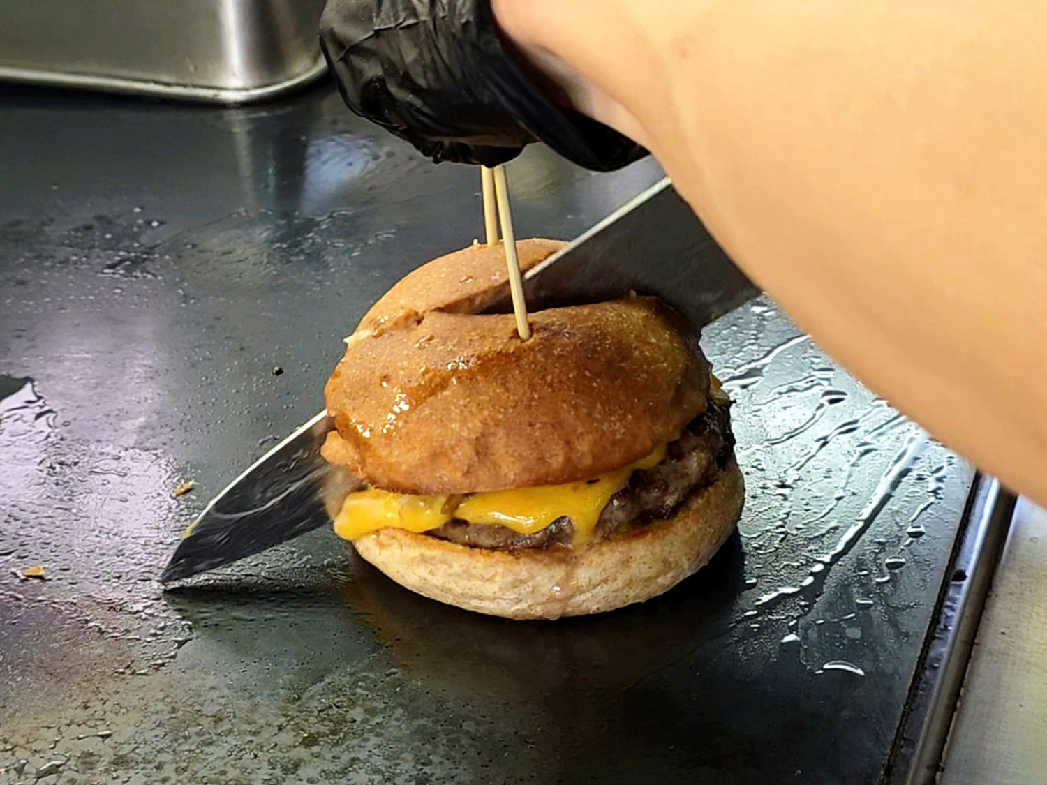 しかし“切ったやつ”は、完成したハンバーガーを切る!