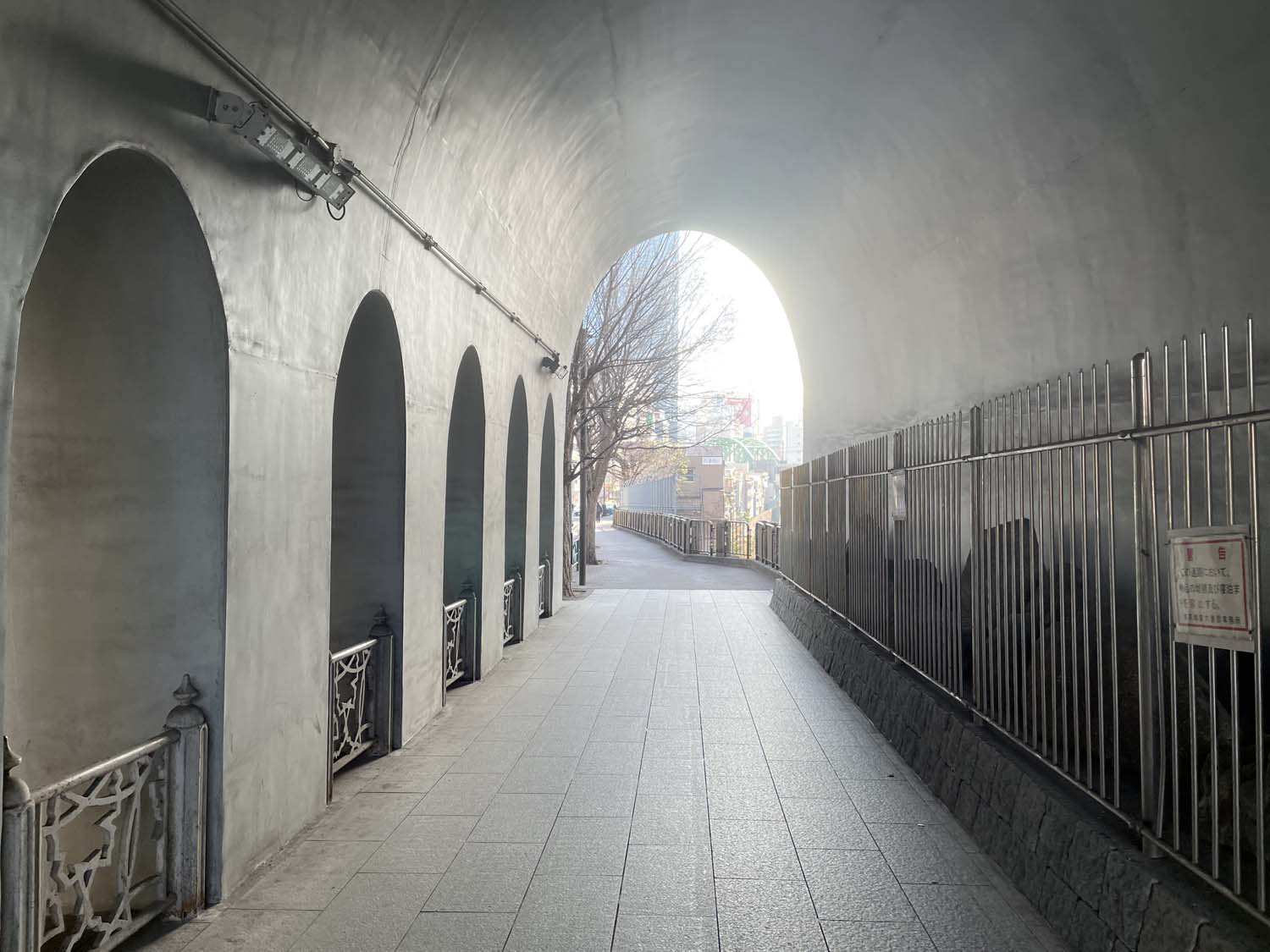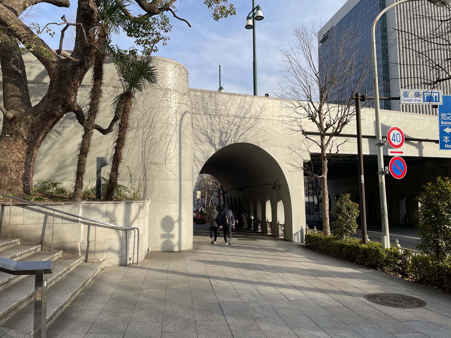 そのまま聖橋を渡りきり、橋北詰の階段を下りて外堀通りへ出る。アーチ橋のフォルムとディテールは見ていて飽きない。リズミカルに並ぶパラボラアーチは山田守の初期代表作「東京中央電信局」にも用いられた特徴的なデザイン要素だ。
