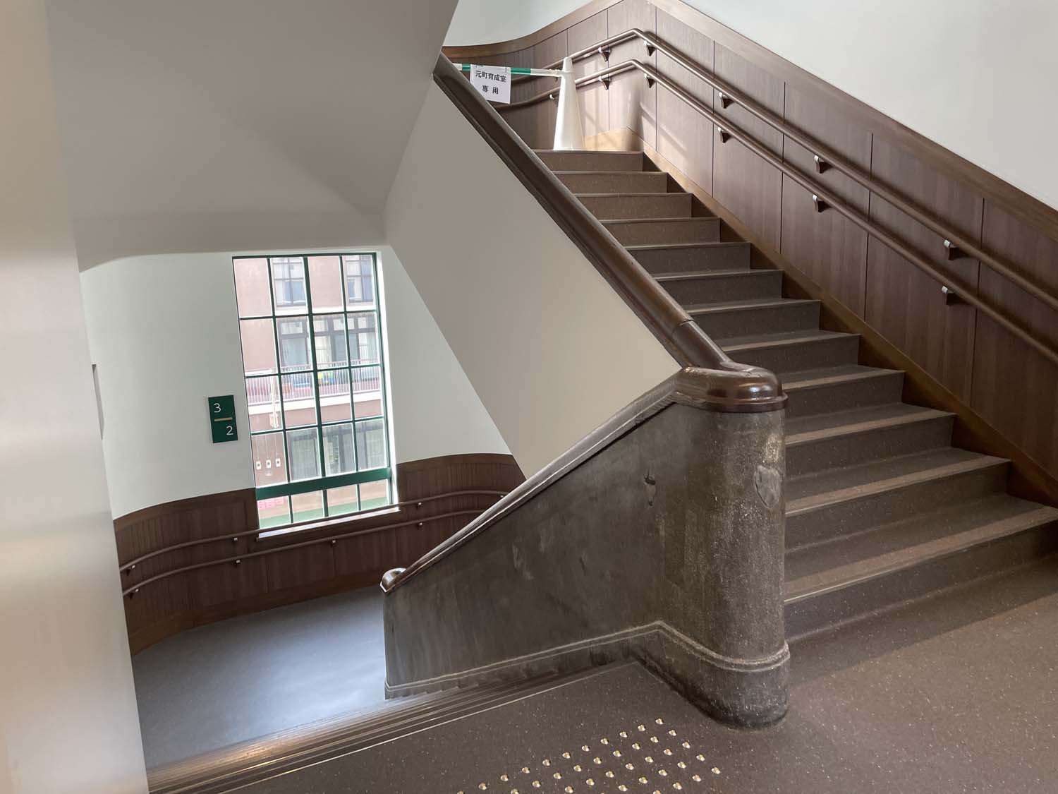 震災復興小学校として元町公園とセットで建設されたのが元町小学校だ。元町小学校は明治45年(1912)本郷2丁目の三河稲荷神社前に開校するが、関東大震災で校舎が焼失、校地を現在地に移転し復興小学校として昭和2年(1927)に建設された。1998年に閉校し近隣学校の仮校舎などに使用されていたが、2019年から元町公園との一体的活用事業がスタートし、校舎の一部を保存再生して2025年4月に複合施設『元町ウェルネスパーク』としてオープンした。