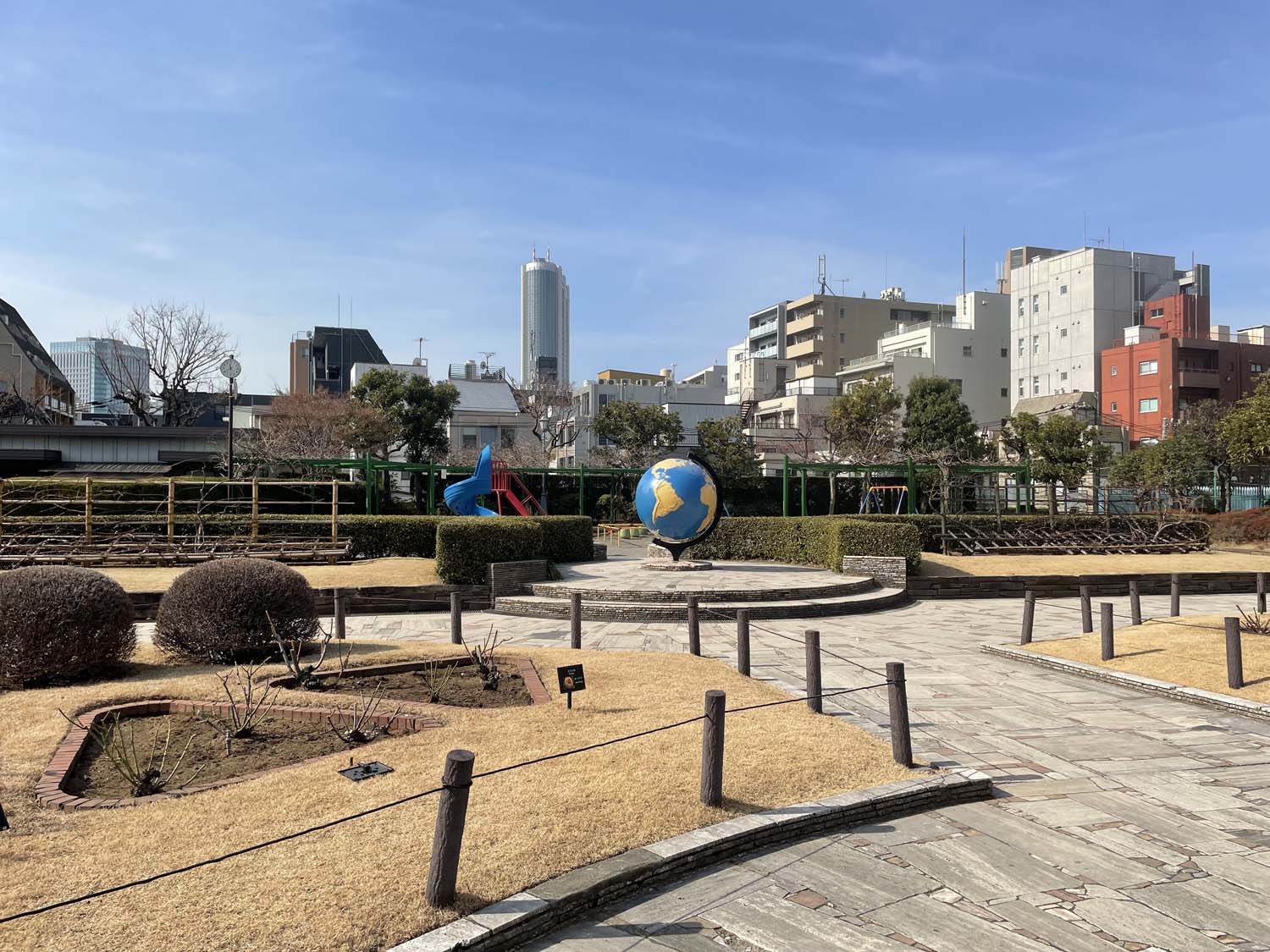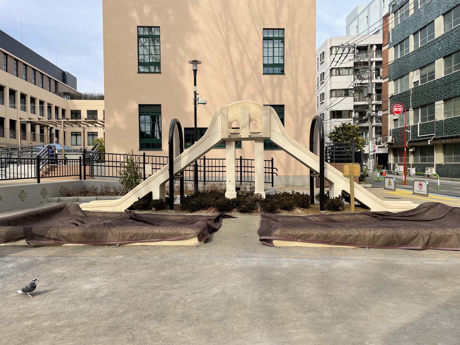 関東大震災の後、不燃化・耐震化された鉄筋コンクリート造の校舎に避難施設の役割を持たせた公園を併設する、震災小復興公園が東京市内に52カ所に設置された。元町公園もそのひとつで、2022年から公園整備事業が行われ、昨年2025年12月にリニューアルオープンしたばかりだ。