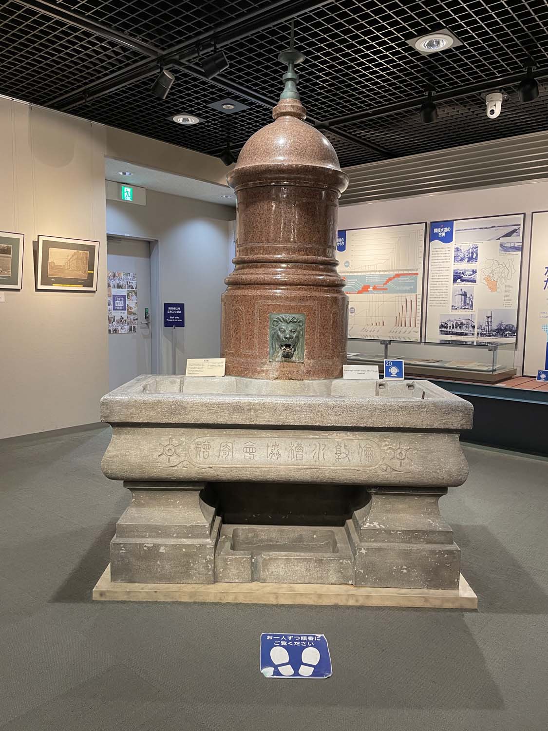 展示室で目を引くのが「馬水槽(ばすいそう)」だ。市電や自動車が普及する前は交通・輸送手段として牛や馬が活躍していたため、牛馬が水を飲むための馬水槽が設置されていた。展示されている馬水槽はロンドンの牛馬給水槽協会から東京市へ寄付されたもののレプリカで、正面上部に牛馬用、下部に犬猫用の水飲み場があり、裏側に人間の水飲み場が設けられている。本物は今でもJR新宿駅東口広場に設置されている。
