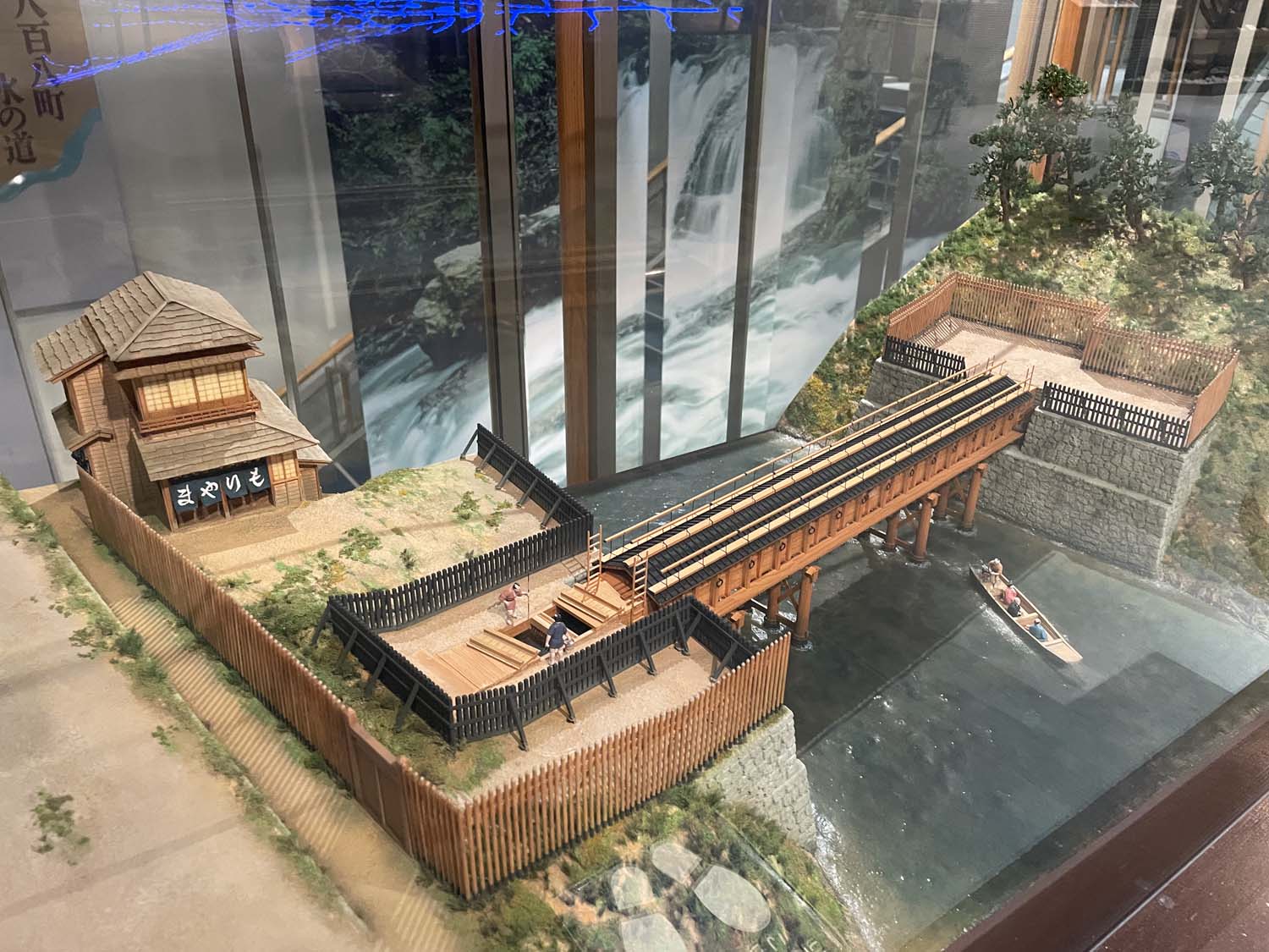 神田上水が神田川を越えるために設けられた「神田上水掛樋」の模型も展示されている。掛樋のそばには鰻屋「もりやま」の店舗がある。当時は神田川で鰻が獲れたというから、今の風景からは想像がつかない。掛樋は木造なので腐食しやすく、十数年ごとに掛け替えられていたという。