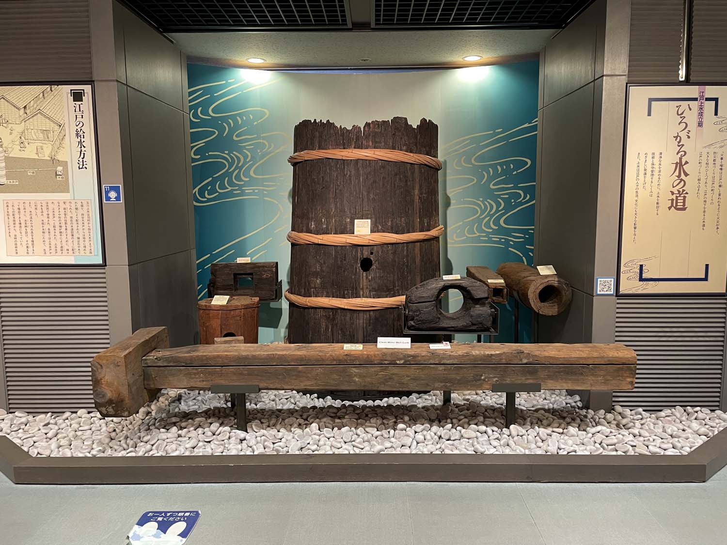 近現代水道は1階、江戸上水についての展示は2階と分かれているので、今回は時代順に2階の江戸上水から見ていくことにした。