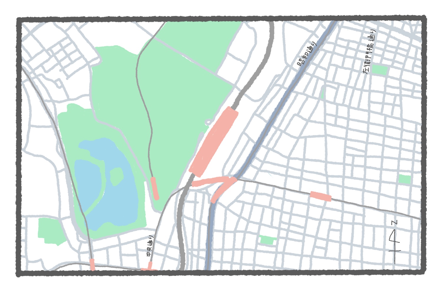 一部道路名を追記したものがこちら。