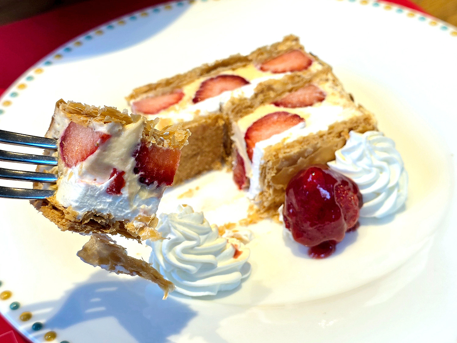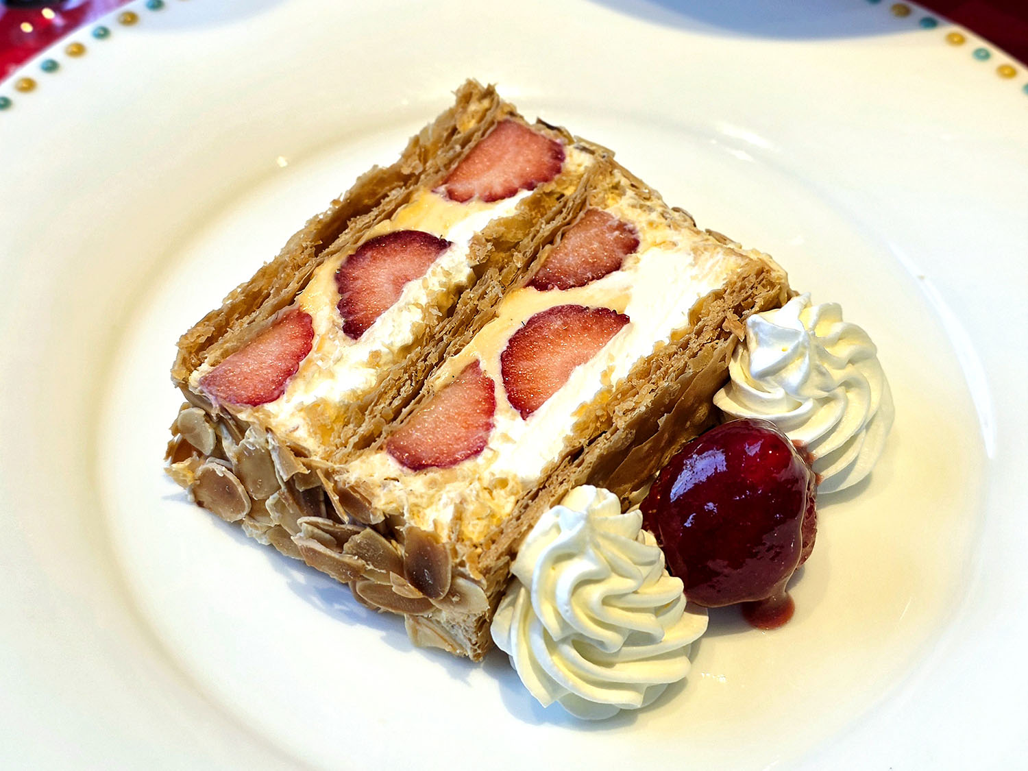 季節によりフルーツなどが変わりますが、常に人気のメニュー。黒猫は、このいちごの時期と桃の時期のナポレオンパイが特に大好き。