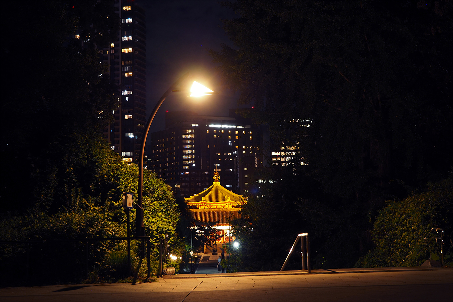 大きなヒントは、左奥に見えている不忍池辯天堂。もともと寛永寺の境内である上野公園一帯は京都に見立てた配置がされており、不忍池は琵琶湖、辯天堂は竹生島の宝厳寺に見立てて建立された。辯天堂が八角形なのは不忍池のどこからでも参拝できるようになのだとか。ちなみに、清水寺に見立てた同じ舞台造りの清水観音堂は、この池を見渡せる位置に立っている。