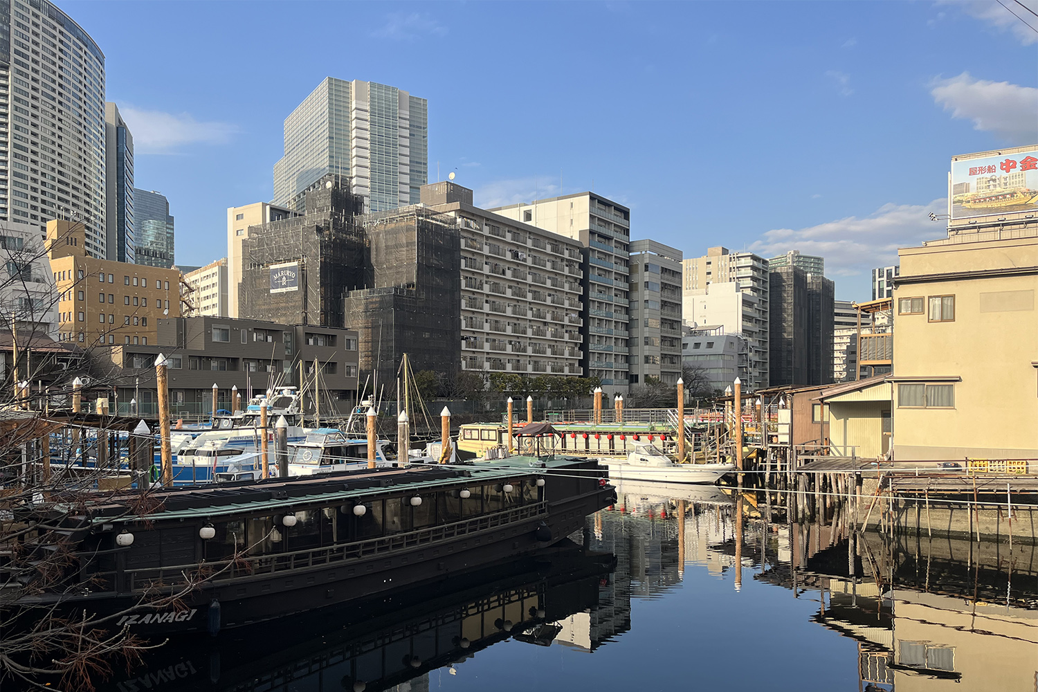 かつては豊富な水揚げを誇る漁村であり、海苔の産地としても有名だった品川浦。その名残をわずかに感じられる場所で、現在も釣舟や屋形船が浮かぶ。