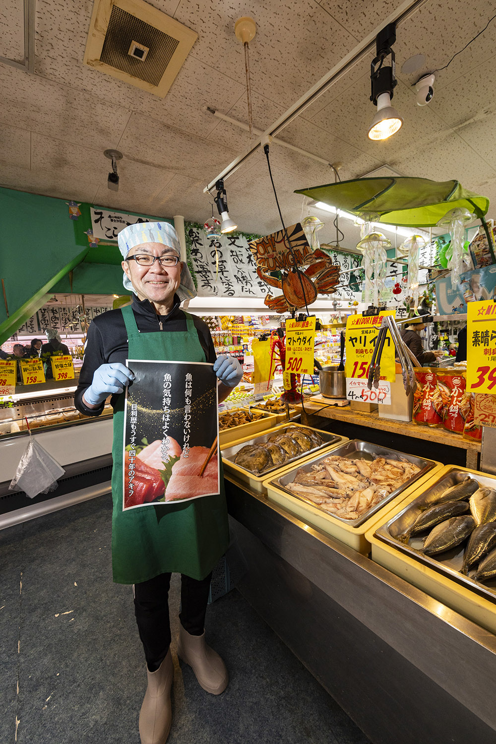 鮮魚売り場もスゴイ。この道40年。目利きのアキラと称される社長・朗さんが毎朝仕入れる魚介が所狭しと並ぶ。一尾がでかい。そして安い。