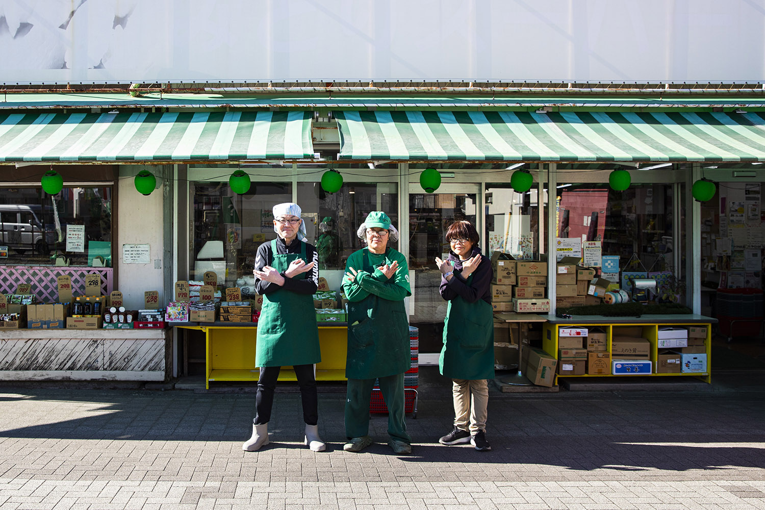 左から目利き(社長兼鮮魚担当)の朗さん、草長(総菜・広報担当)のみどりさん、大蔵大臣(経理担当)の良子さん。スーパーを引き継いだ三姉弟だ。ノリが良くてフレンドリー。