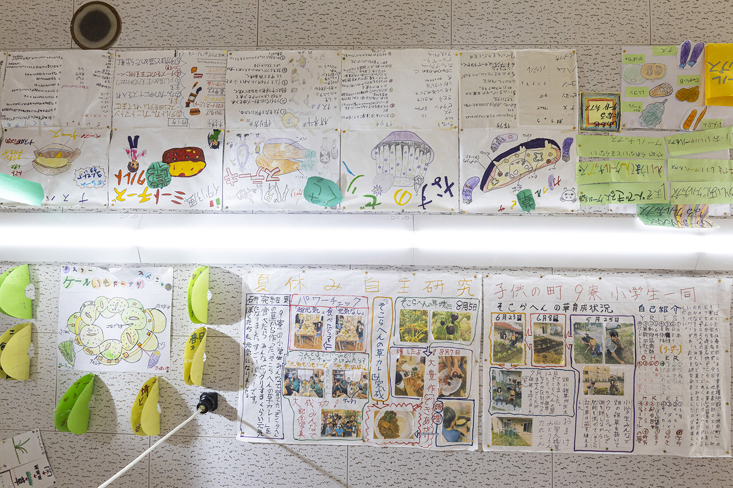 天井を見上げれば、子供たちの自由研究を発見。近隣小学校対抗で「どの研究が一番か」と、コンテストを開いているそう。先生たちの方がアツくなってるんだって。大人もアツくなっちゃうよなあ。