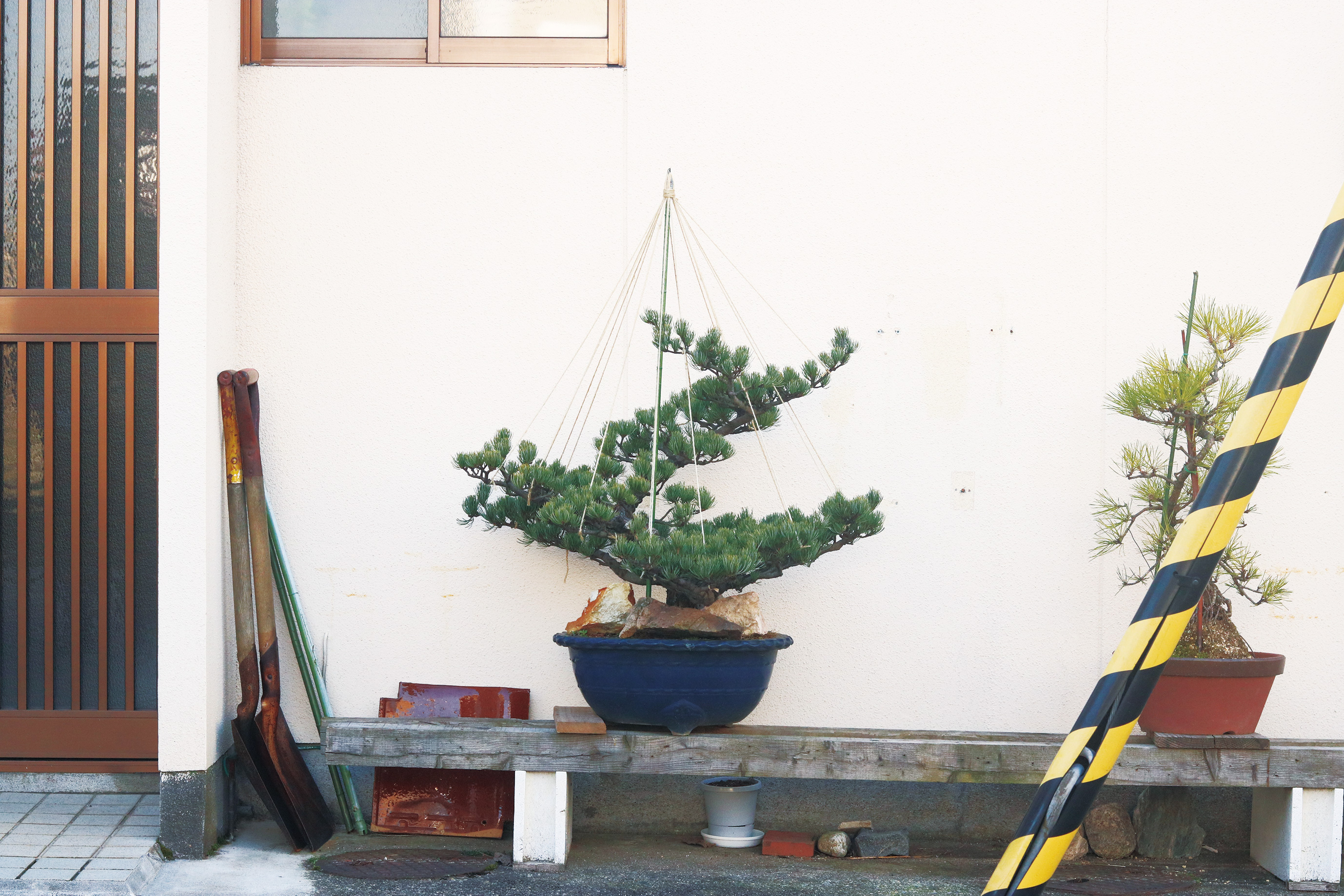 個人の鉢植えや盆栽など小さいサイズの植物でも、住民の手で独自の雪吊りが施されている場合がありますね」