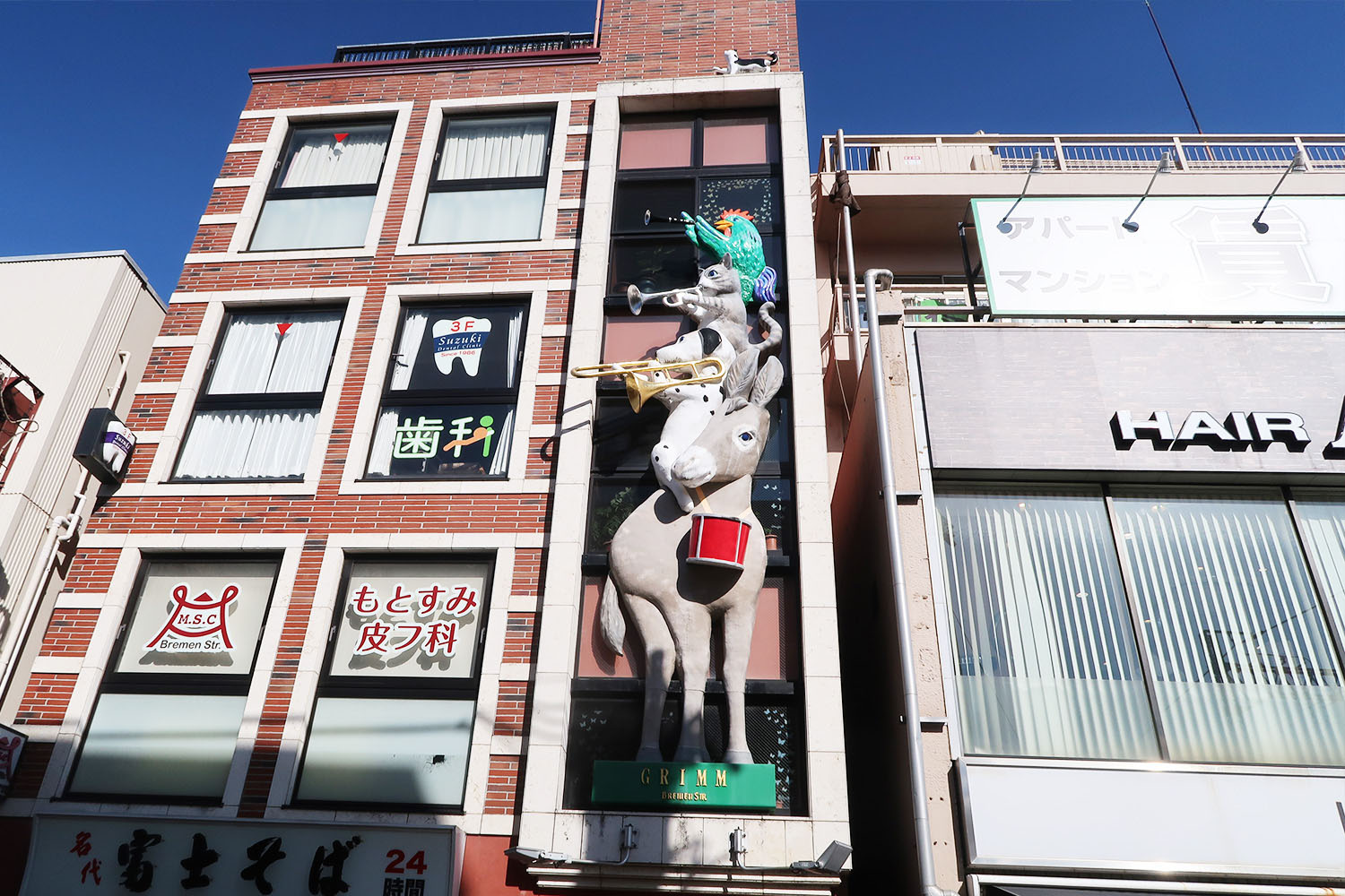 約30年前、商店街の地面をタイル張りにする大規模改修で国から助成金が出ることになった。せっかくなら中世ヨーロッパ風にしたいねとなり、それならドイツかねとなり、グリムやブレーメンのイメージが候補にあがった。もともとこの商店街では「10月祭」という音楽イベントを毎年開催していたので、音楽隊といえばブレーメンだろう、ということで「ブレーメン通り商店街」に改名することが決まった。