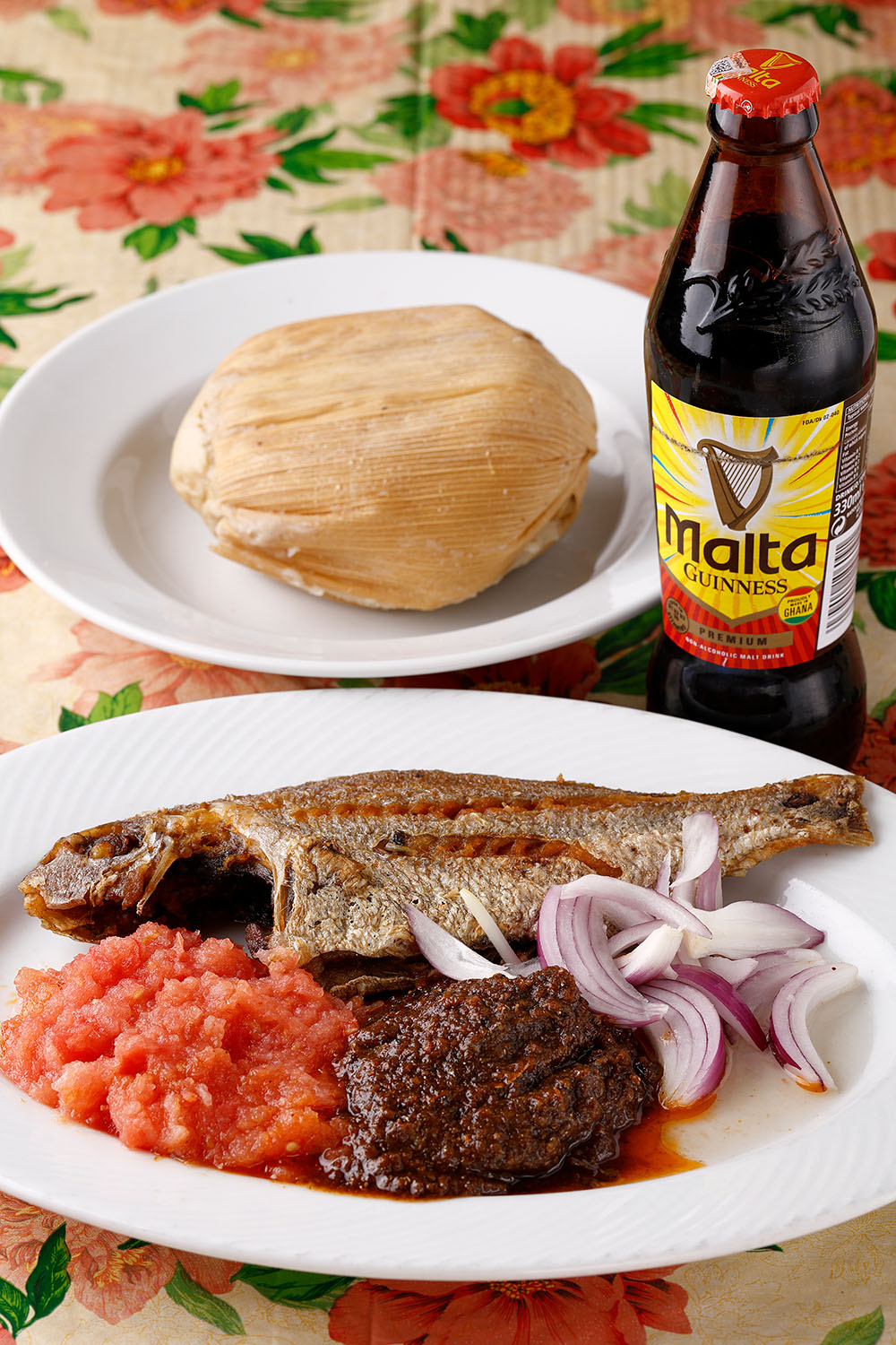 「ガーナではどの家でもお母さんが作る。白いごはんにのっけてもおいしいよ」とフェリシア・ケセワさんが話すのは、シトというガーナ名物の国民的調味料。エビや煮干し、ニンニク、チリペッパーなどを煮込んだものだ。「それとケンケですね」と比呂さん。こちらはトウモロコシ粉を発酵させて蒸した主食。酸味が強いが、魚とよく合いなんともクセになる味わいだ。