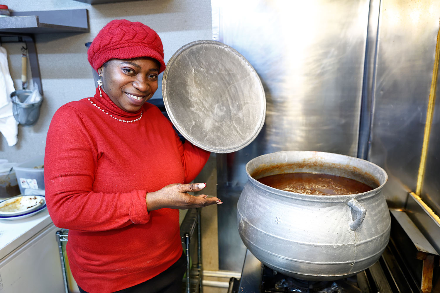 10年以上、日本各地のアフリカ料理店で腕を振るってきたティフ・ジャネットさんが2025年5月にオープン。比呂さんは「西アフリカ共通ですが、カメルーンも出汁を取って旨味を出す料理が多い。乾燥させたナマズや、ザリガニの粉と一緒に煮込んだり。それにデッカい肉や、フフ(キャッサバ、ヤムイモなどでつくる餅のような主食)と食べるガッツリさが魅力です」と熱く語る。