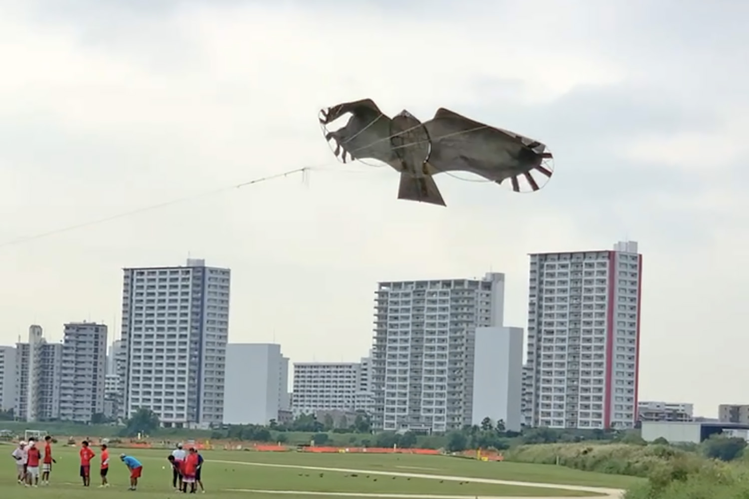 ふわふわ動いてまるで生きているようだ。芝生で地面をつついていた鳩の集団が、驚いて一斉に飛び立っていった。鳩には本物の鳶に見えたのだろうか。