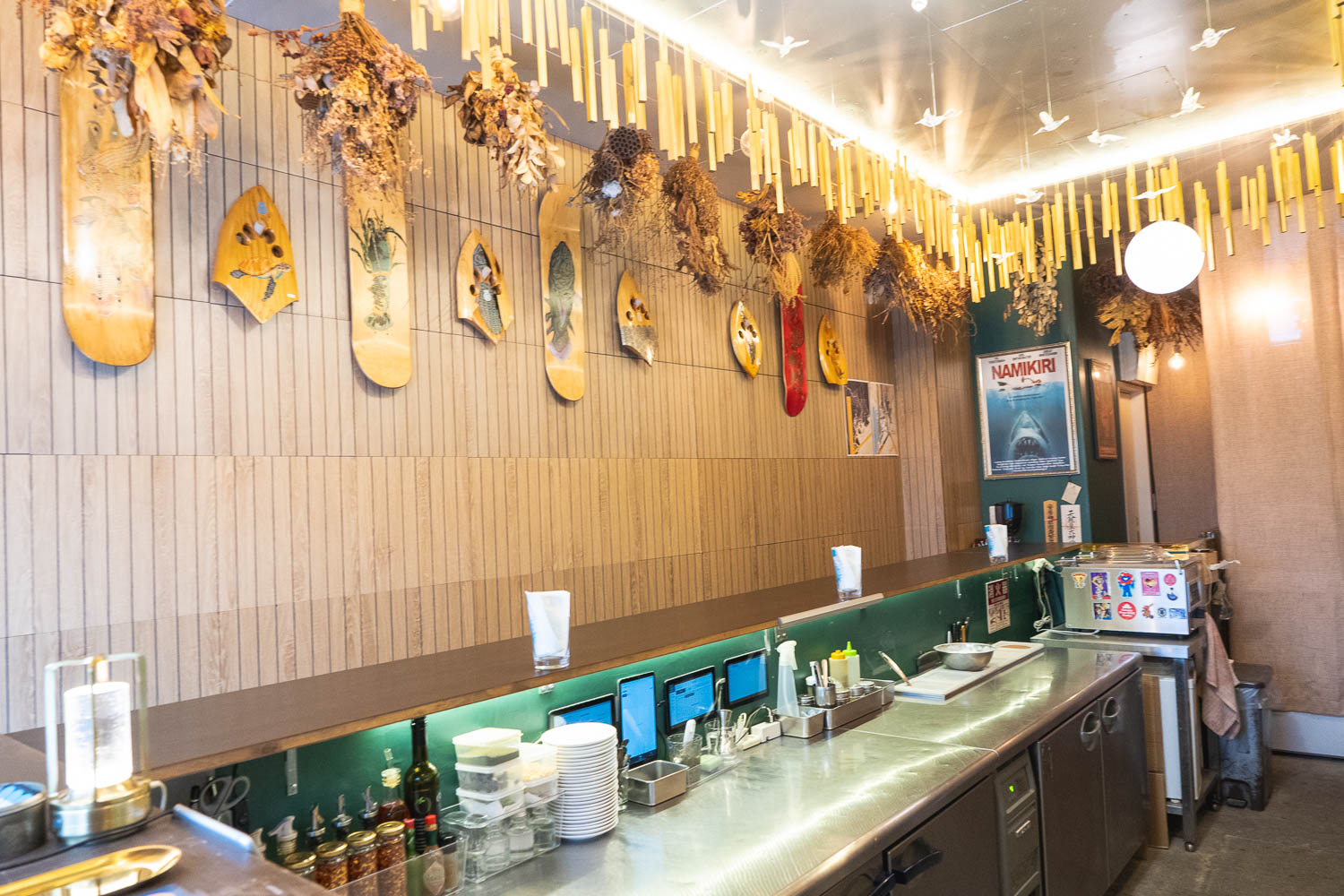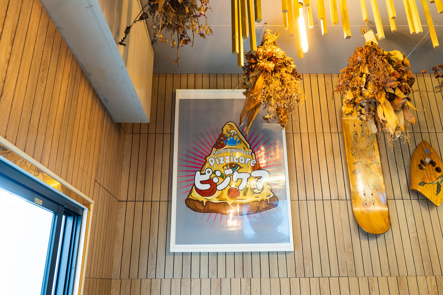 Yoさんは他にも「おもしろいことをやってみて、自分がお金を取ってもいいなと思えるレベルになったら仕事にする」を繰り返している。『Pizzicare』以外にも、コーヒー豆の卸、デザインに関するコンサルティングなど複数の事業を行う。店で展示販売されているスケートボードやボディーサーフィンのギア、Tシャツのイラストも自ら手掛けている。当然、いつも店にいるわけではない。