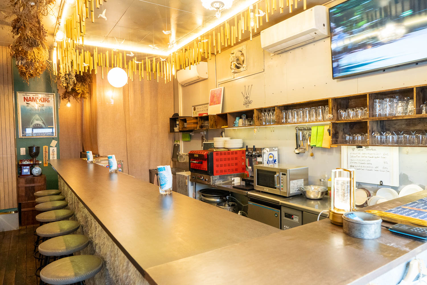 10代前半はろくに学校に行かず、建築やデザインを学んだ専門学校も卒業直前にドロップアウトし、その後半年間ローマをエンジョイ。帰国後に外国語を身につけようと外国人が多いレストランで働いたのが飲食業への入り口になり、何年か後に下田で働いてピザづくりを身に付けた。イタリア滞在経験のある店主が高円寺で提供するピザが下田育ち、しかもアメリカの人に好まれるというのもおもしろい。ちなみに高円寺に店を開いたのは「自宅から近いから」らしい。