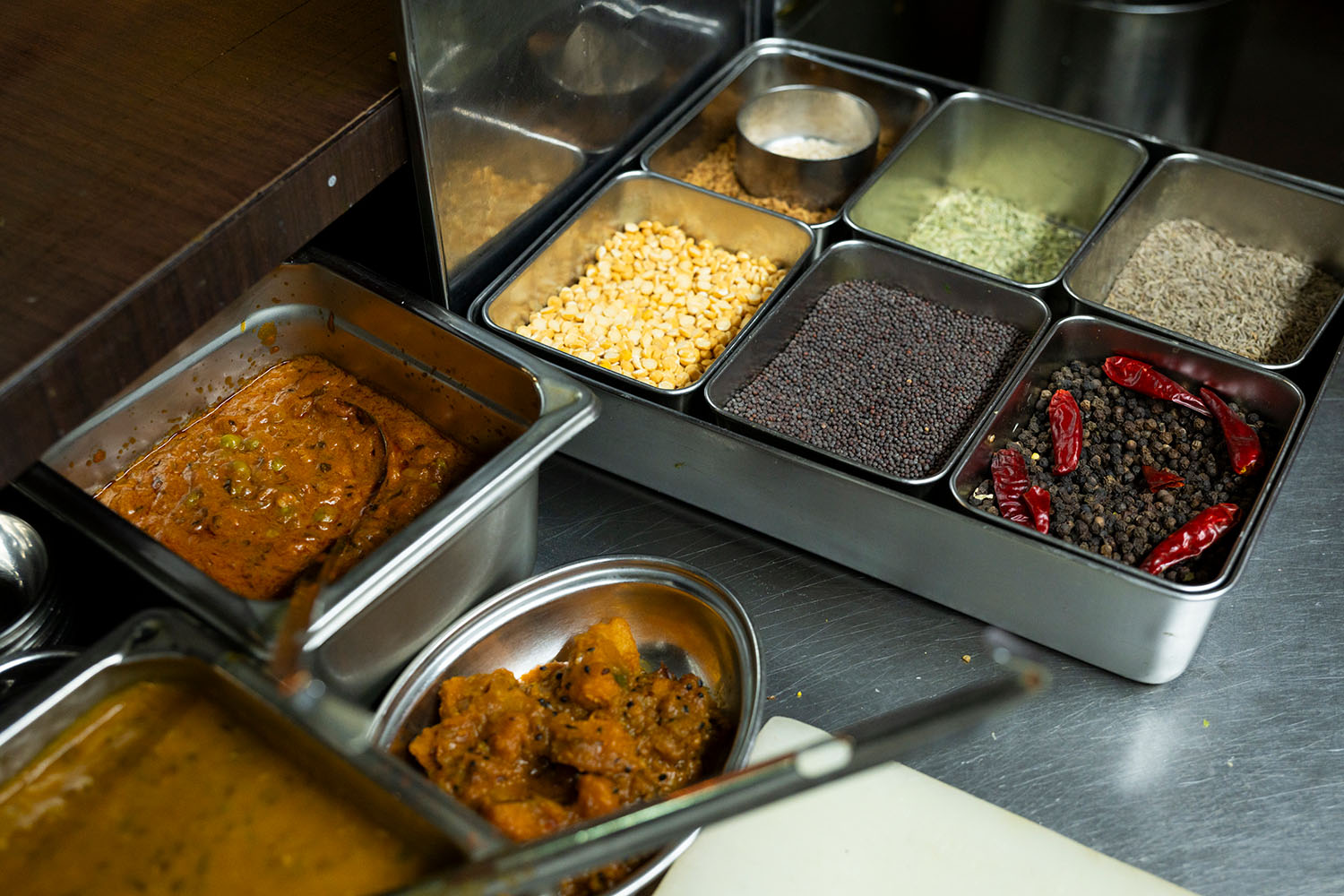 とはいえ「これがジャイナ料理」というものはない。さまざまなメニューを、ジャイナスタイルで調理してくれる店なのだ。何を食べるか食べないかは「人によっても家族によっても違う」とラジェンドラさんは言う。たとえばタマネギひとつとっても解釈の違いがある。同じキッチンでタマネギが調理されていることすら許さない人もいれば、菜食であればいいじゃないかとタマネギを食べる人もいる。そのあたりの細かな主義、好みを『ヴェジハーブサーガ』のシェフたちは受け取め、個々に合った食事を提供してくれる。根菜だけは入れないでとか、ジャガイモはダメといった注文に応じてくれる。