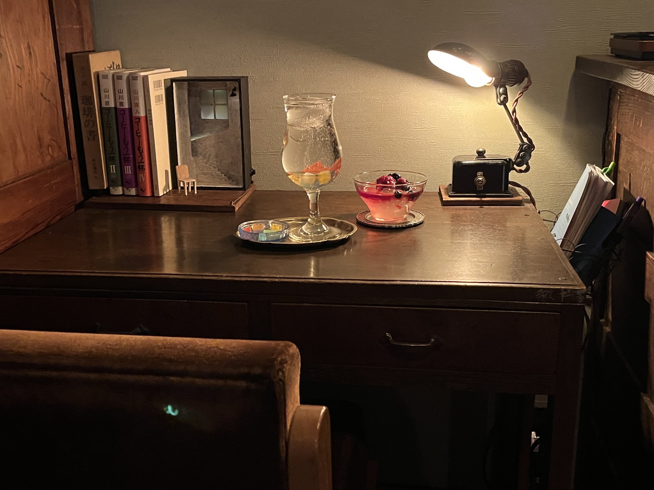 メニューは自家焙煎のコーヒーをはじめ、紅茶、ハーブティー、ウイスキーなどドリンクは一律700円、生わらび餅やクッキーの盛り合わせといったお茶請けは450円。ドリンク代700円に席料300円が発生し、お茶請けや追加ドリンクなどを注文することで席料が無くなるシステム。1ドリンクのみでは3時間、追加注文すれば4、5時間ゆっくりできる。カラフルで素朴な甘さがクセになる琥珀糖ソーダや手作りの生わらび餅をいただきながら、まるで図書館のような穏やかな空間を堪能しよう。