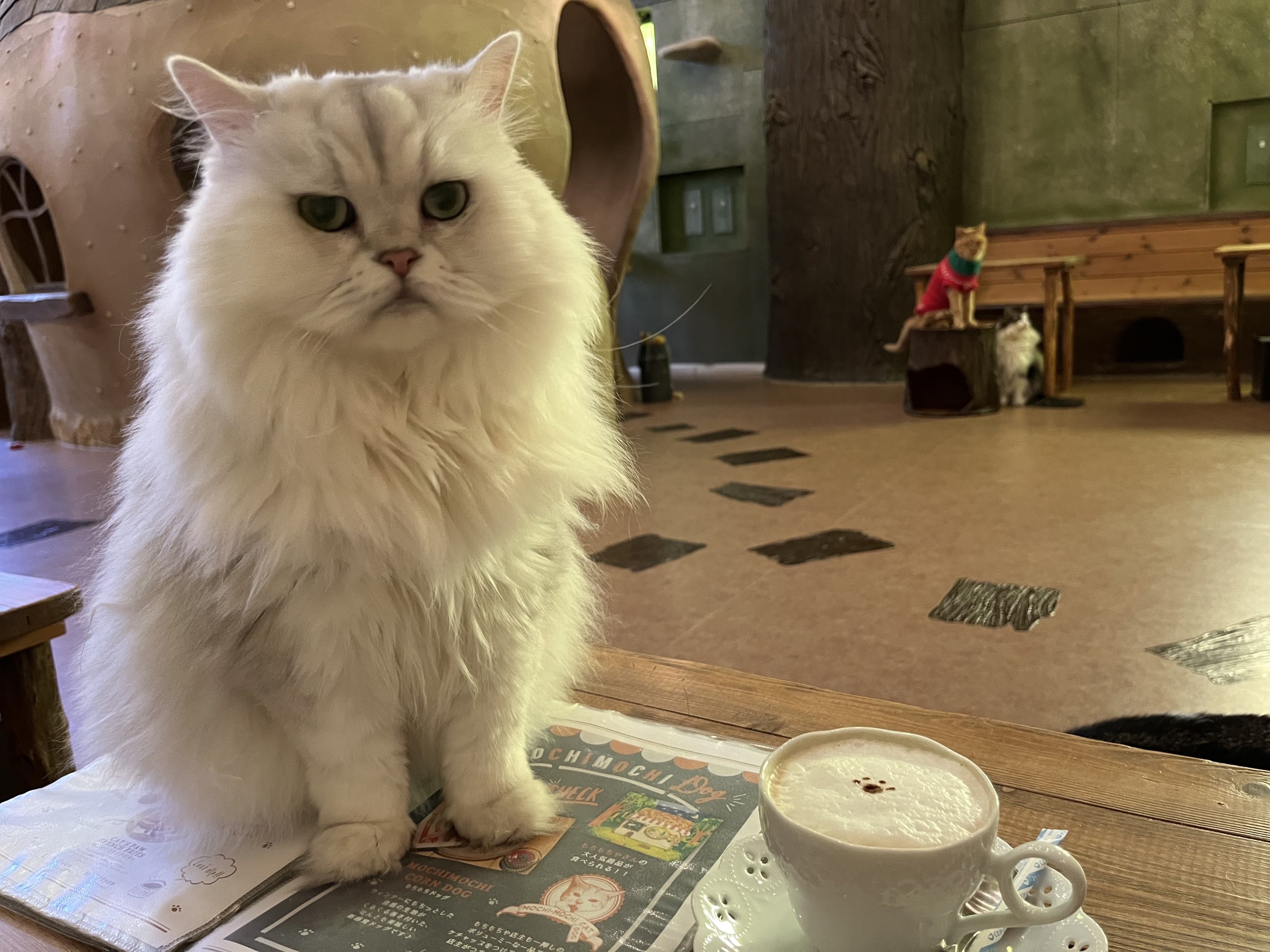 肉球印の名物カフェラテでネコまみれのティーパーティー『Cat Cafe てまりのおうち』