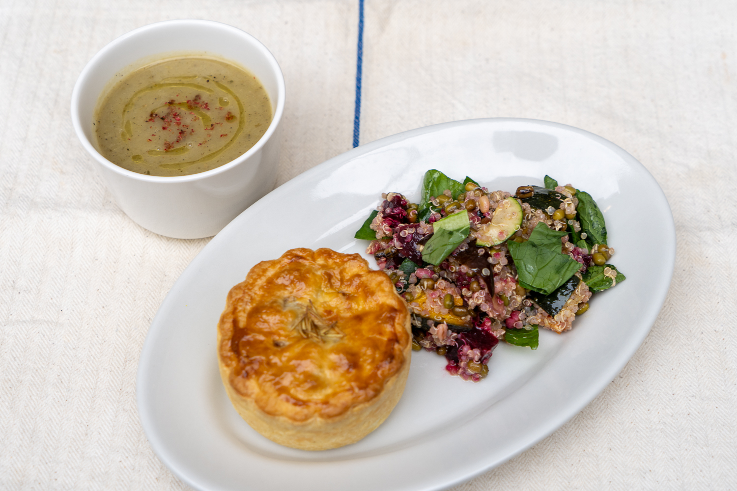 平日のランチメニューは、サラダやスープがたっぷり添えられる。イギリスでは、季節の野菜がたくさん食べられることもオーナーのイアンさんが、中目黒の店から伝えたいことのひとつだ。