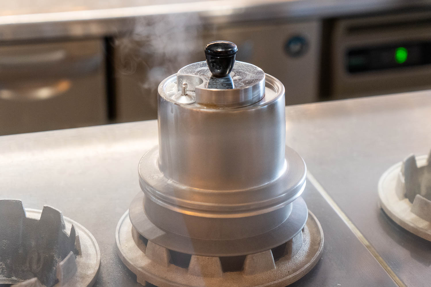 米は、京都の老舗米穀店『京都八代目儀兵衛(きょうとはちだいめぎへい)』から仕入れたブレンド米。店内のコンロで1人分の0.7合ずつ炊き上げられる。炊きたての甘い香りのご飯は、ツヤツヤピカピカ。