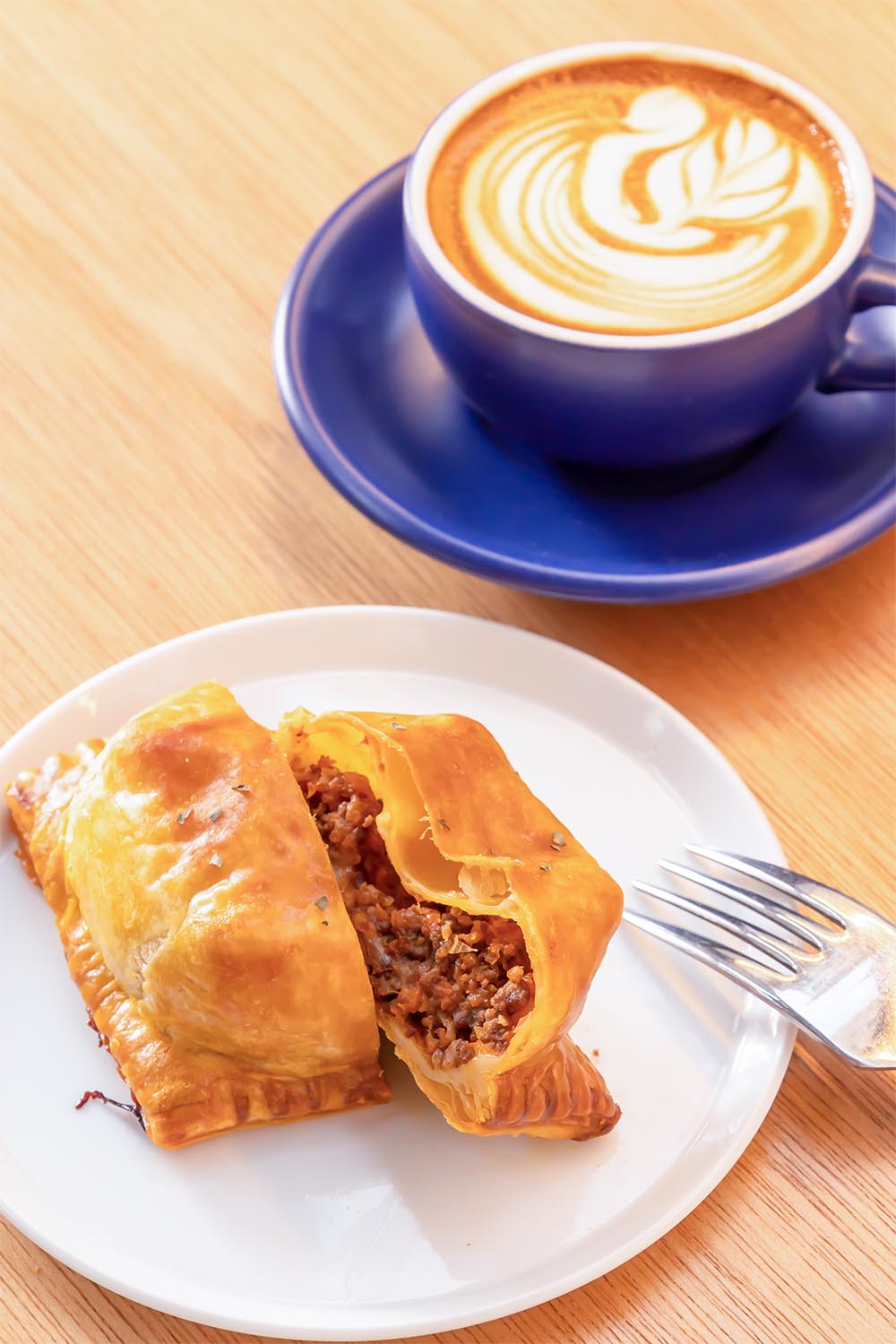 「オーストラリアではみんな四六時中コーヒーを飲んでいます」と、オーストラリア育ちのオーナー・由良浩明さん。「日本でもスペシャルティコーヒーを日常化させたい」とシドニーの『Stitch Coffee』から豆を仕入れ、エスプレッソを中心に提供している。カフェラテに似たマジックは、エスプレッソの倍ぐらい濃いショットを使うのでコーヒーらしさもしっかり。ぜひオーストラリアの定番グルメであるミートパイと一緒にどうぞ。