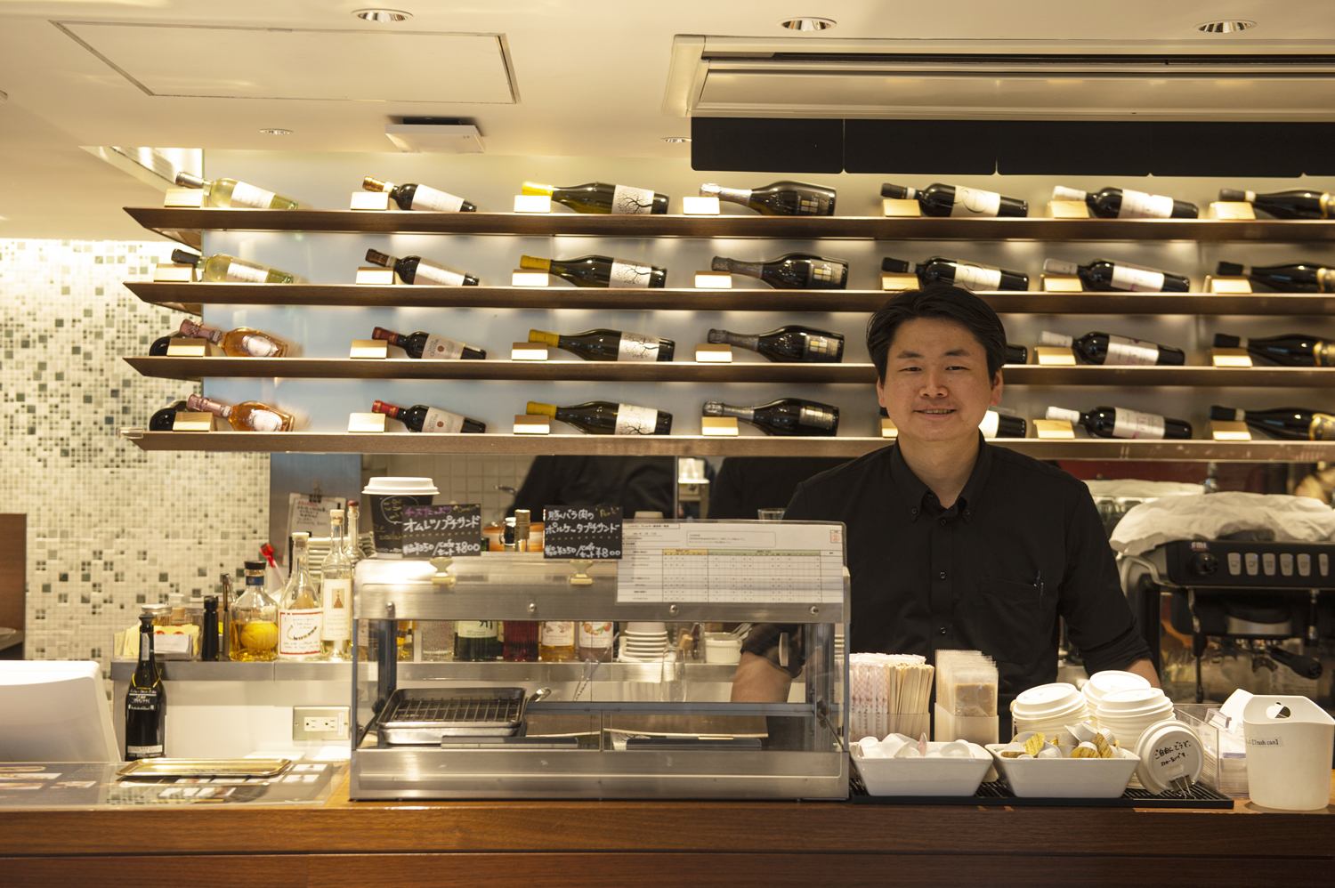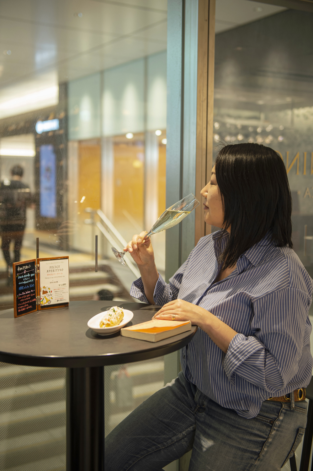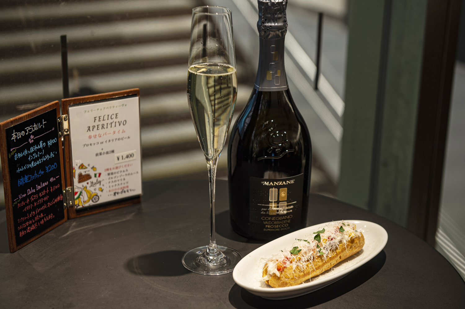 新幹線北のりかえ口の目の前というロケーションで、エスプレッソやイタリアンワインが楽しめる。エクレア風の皮に伝統的なイタリア料理を挟んだパニーノ660円は、軽い口当たり。3口ほどで食べられる小ぶりな大きさのため、ちょっとしたおつまみにピッタリ! メニュー表には提供までにかかる時間も表示されていてうれしい。駅構内だけれども、本を読んだり、往来する人を眺めたり、ゆったり過ごすことができる。