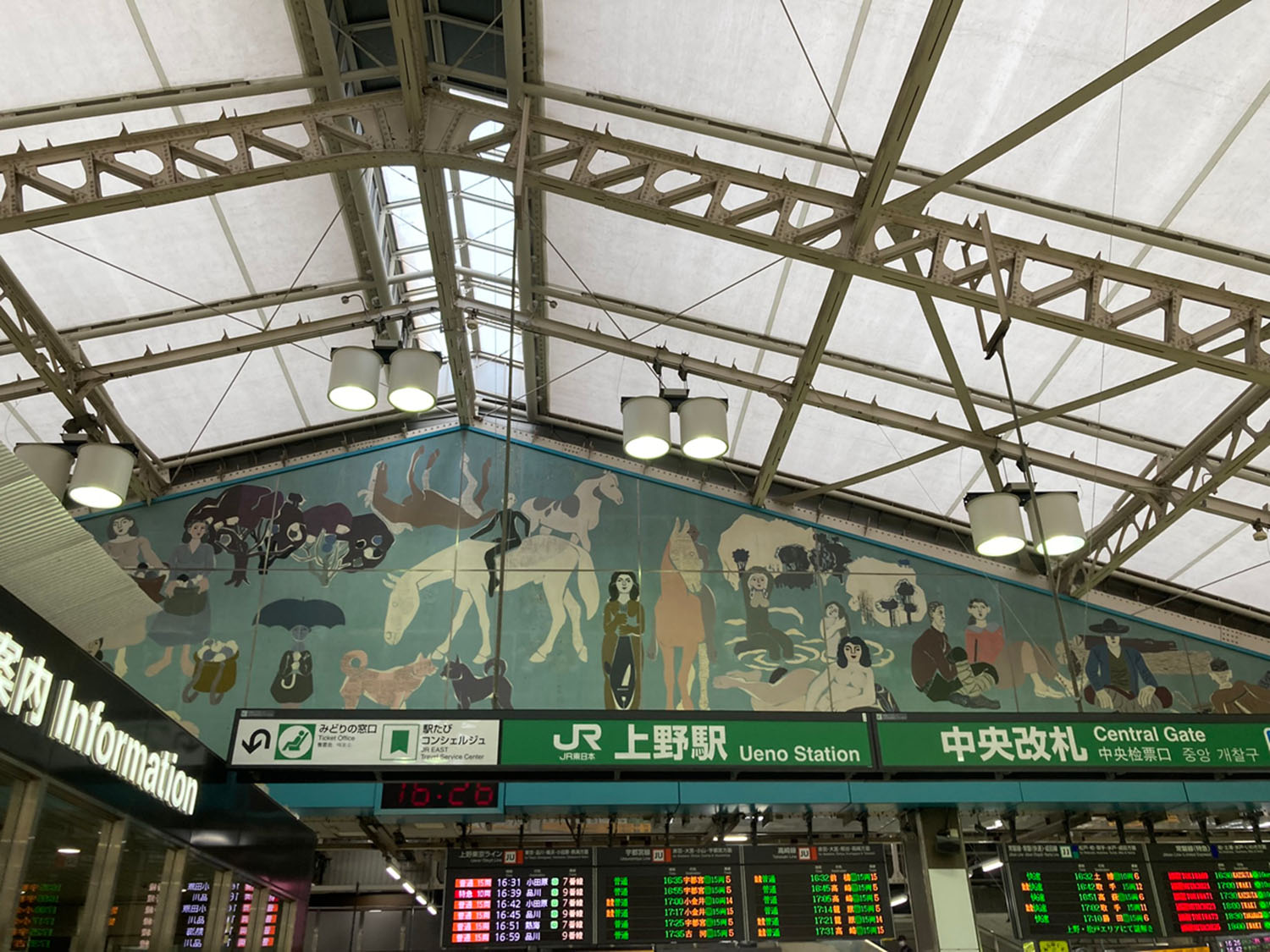 向かい側には宮田亮平原画のステンドグラス「上野今昔物語」があり、上野駅の歴史に思いを馳せながら待ち合わせをすることができる。
