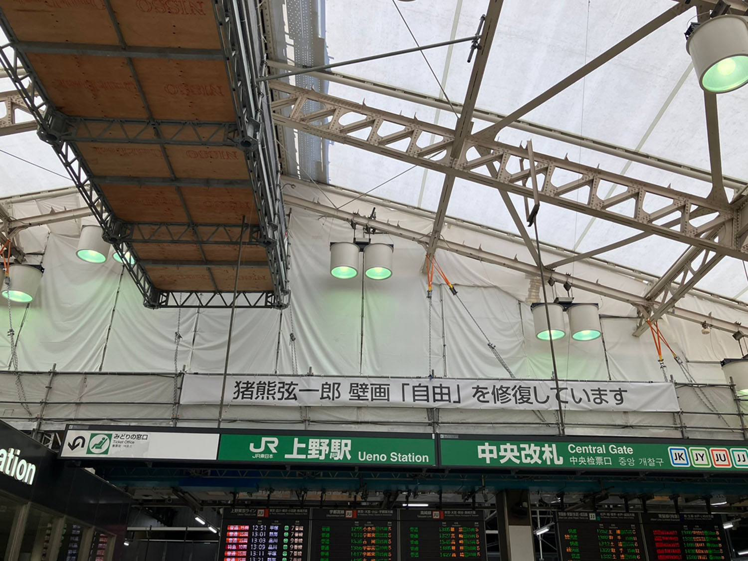 中央改札を出ると、猪熊弦一郎「自由」や、