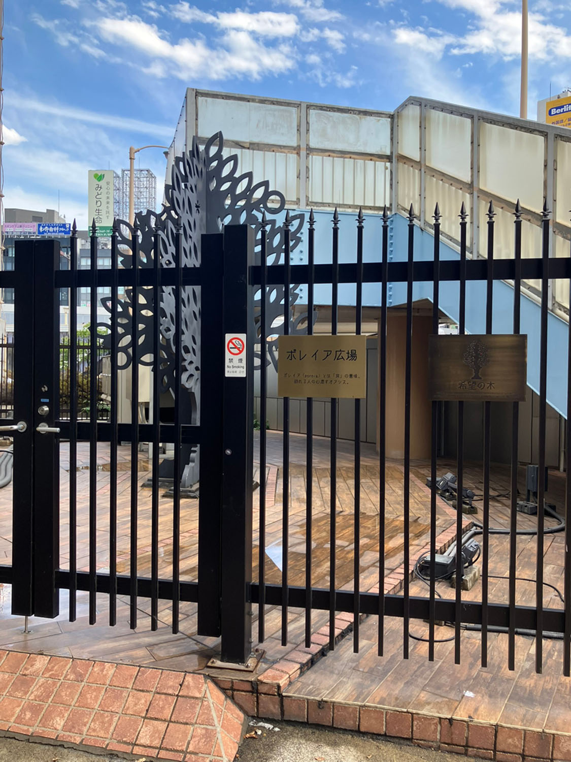 中央改札からまっすぐに進んで、広小路口を出たすぐ左手に「希望の木」(ポレイア広場)と題されたモニュメントがある。これも待ち合わせには良さそうな目印なのだが、なぜか周囲が柵に囲まれていて近づくことができない。